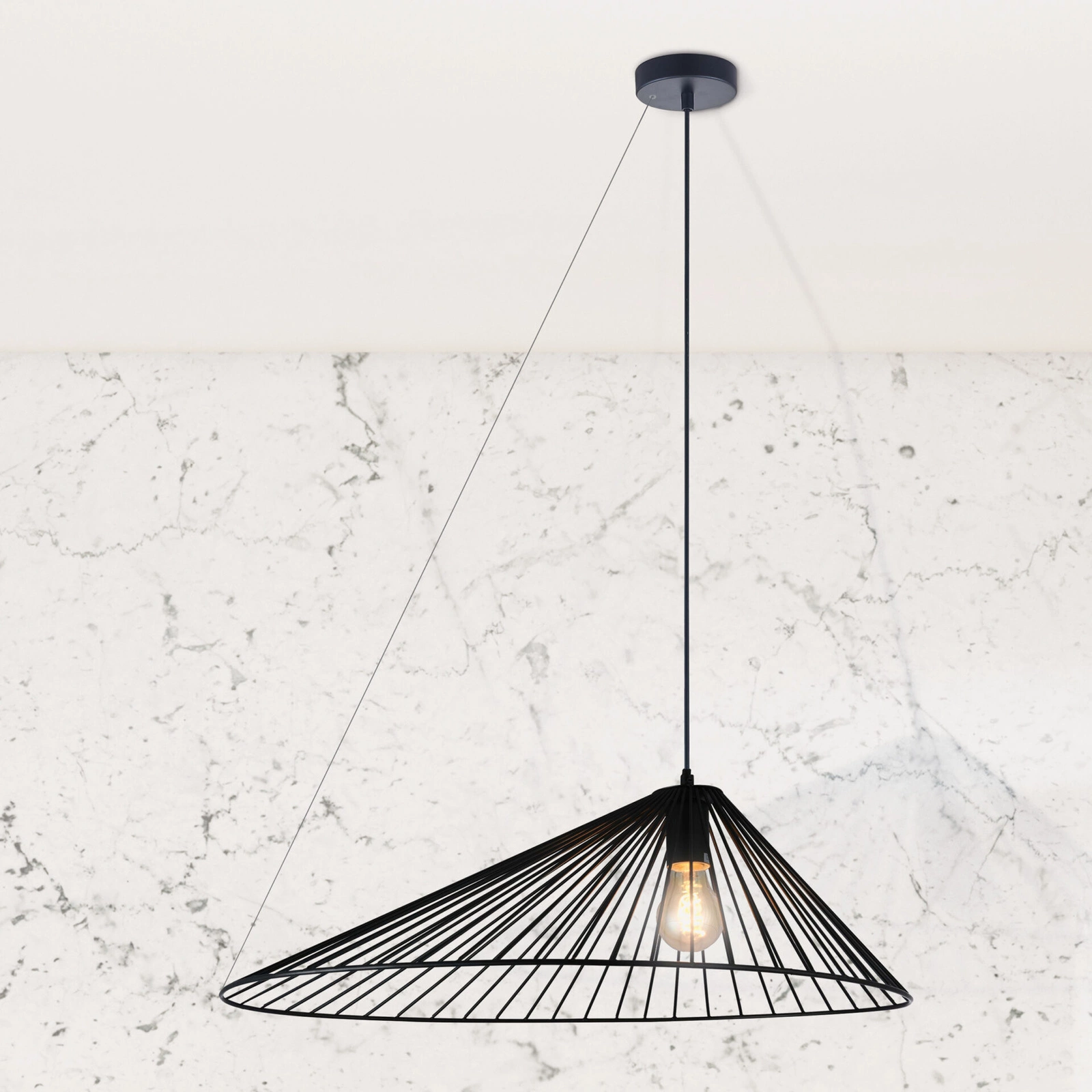 - Regulacja pochylenia: Możliwość dostosowania kąta nachylenia lampy za pomocą przycisku u nasady linki, co zapewnia idealne dopasowanie do specyfiki pomieszczenia.