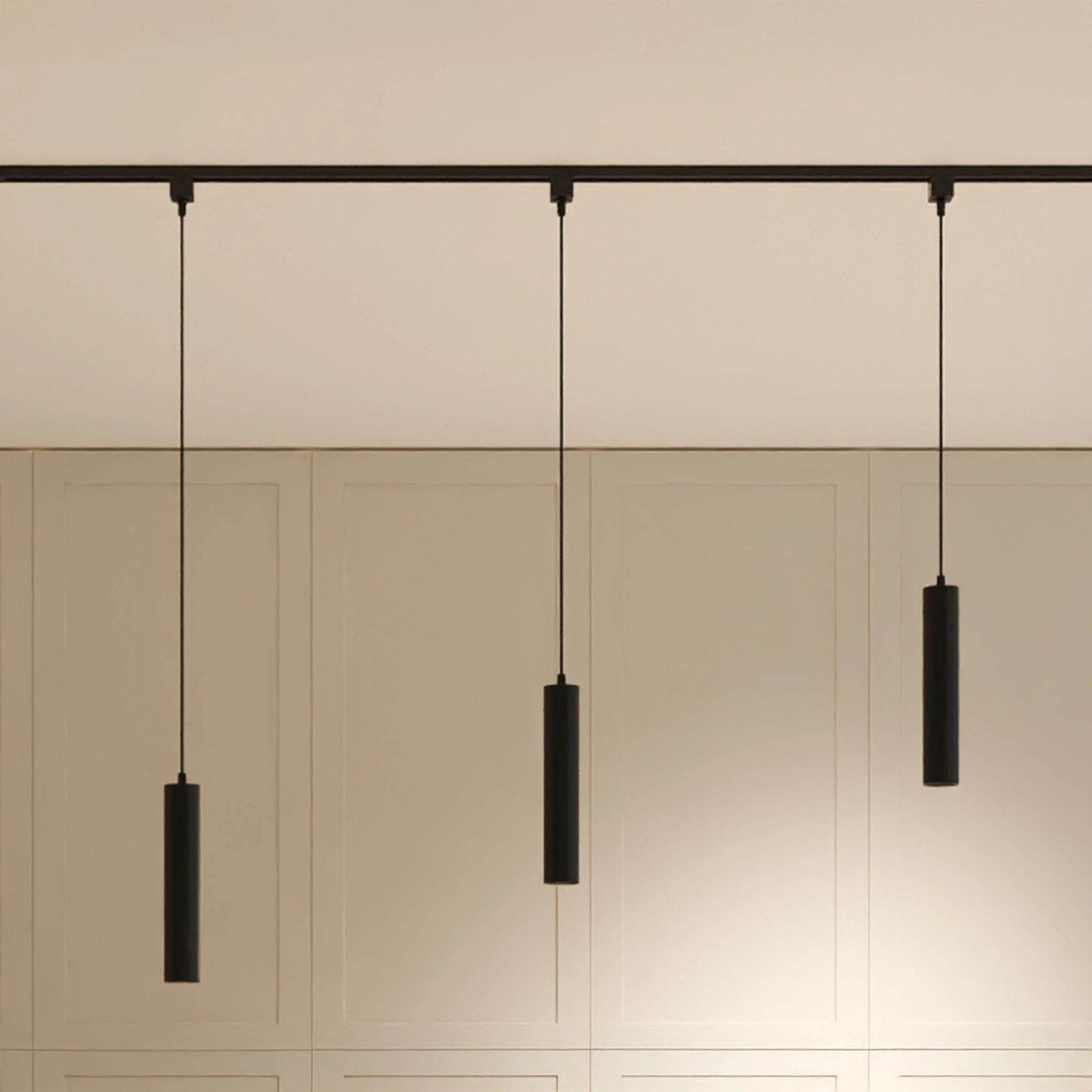 Solidna konstrukcja z metalu oraz cylindryczny kształt tuby nadają lampie minimalistyczny, nowoczesny wygląd. Montaż na szynie umożliwia łatwą zmianę położenia punktu świetlnego w zależności od układu wnętrza. Czarna kolorystyka podkreśla elegancki charakter oprawy i doskonale wpisuje się w industrialne oraz nowoczesne aranżacje.