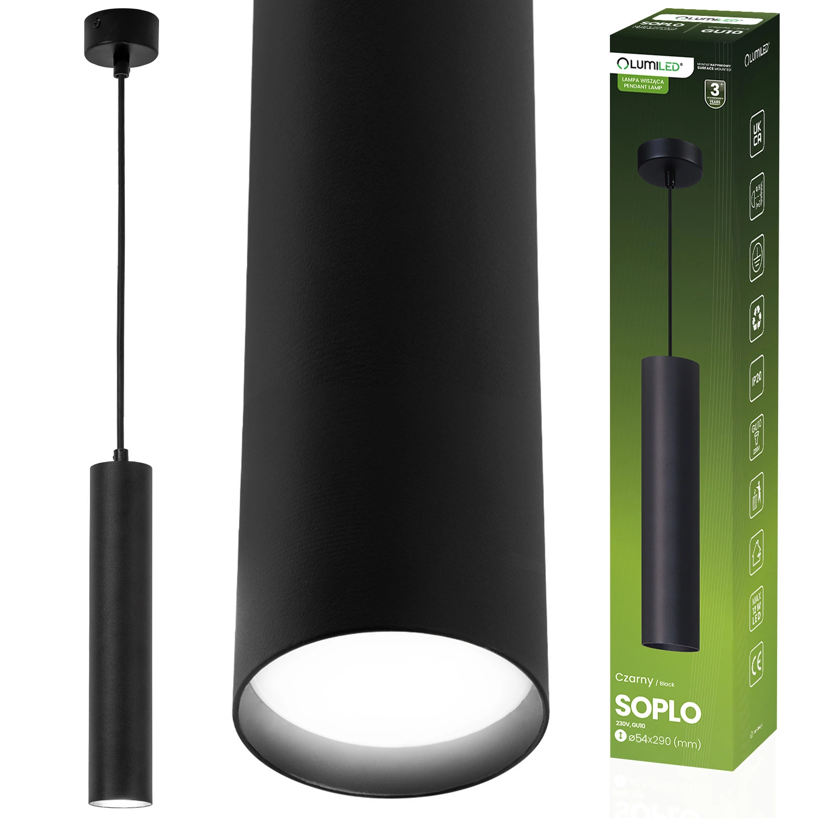 Lampa Wisząca Sufitowa Zwis 29cm Reflektor GU10 LED SOPLO Czarny LUMILED