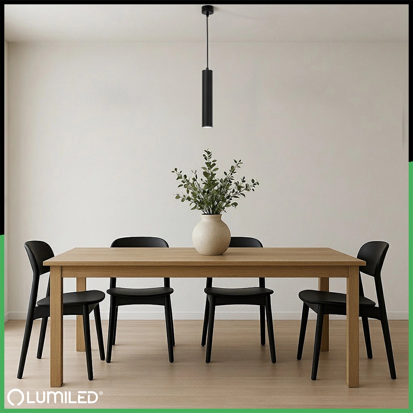 Regulowana długość przewodu daje Ci swobodę dopasowania oświetlenia do układu wnętrza i konkretnej funkcji pomieszczenia. Możesz zawiesić reflektor nisko, by zbudować przytulny klimat nad stołem lub wyspą kuchenną, albo wyżej – dla bardziej ogólnego światła w strefie dziennej. Sam decydujesz o efekcie, bez kompromisów i bez ograniczeń.