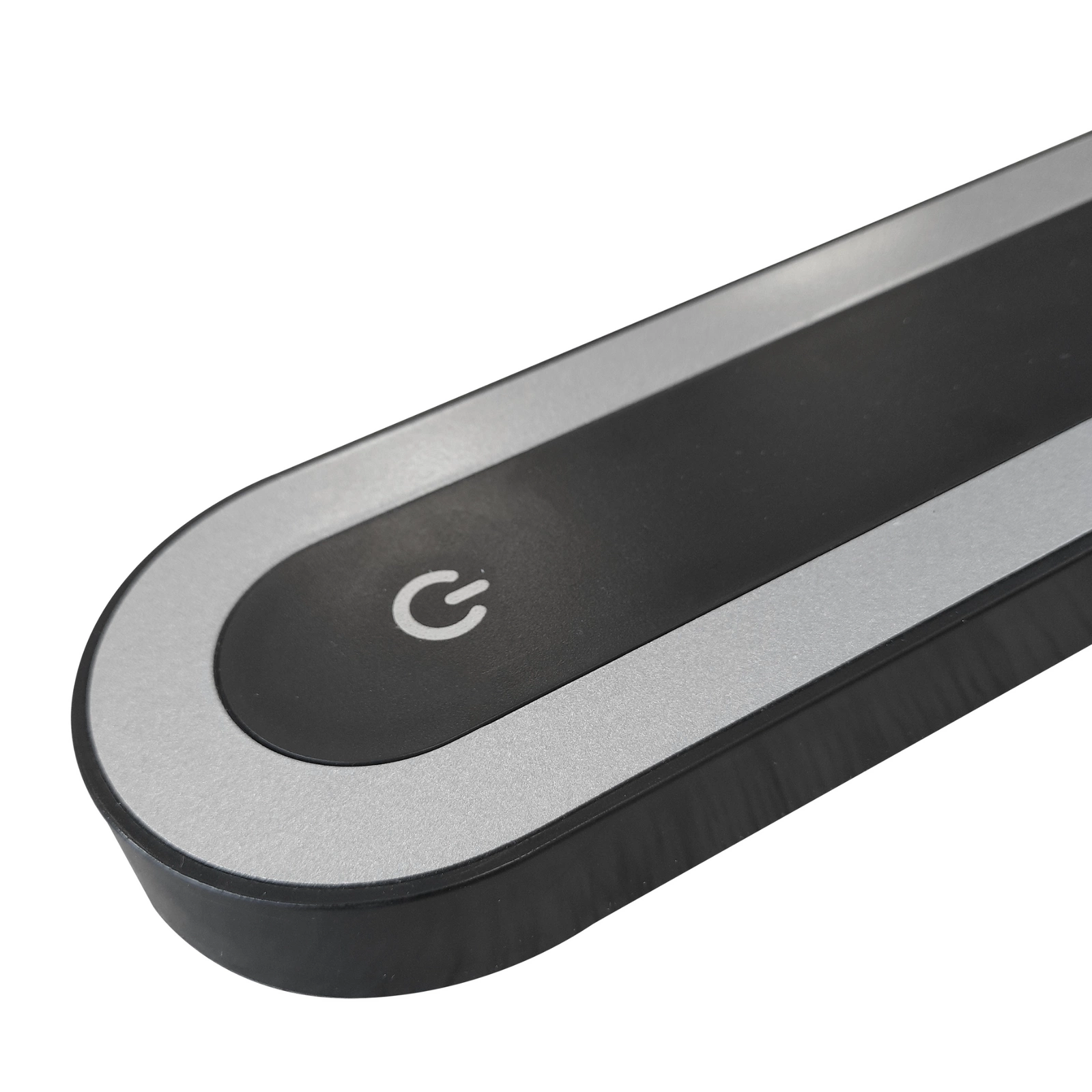 - Nowoczesny Design: Stylowa lampka biurkowa LED o eleganckim czarno-srebrnym wykończeniu, idealna do modernistycznych wnętrz.