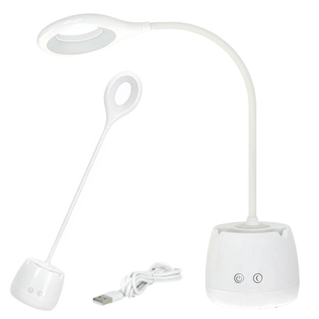 Regulacja kąta świecenia o 360° oraz funkcja ściemniania dają pełną kontrolę nad intensywnością i kierunkiem światła. Co więcej, lampka jest wyposażona w praktyczne udogodnienia takie jak uchwyt na telefon i kubek na długopisy, które pomagają utrzymać porządek na biurku. Niezawodne zasilanie przez USB-A umożliwia ładowanie z różnych źródeł, a kompaktowa konstrukcja i niska waga sprawiają, że lampka LUSIA LED pasuje idealnie do każdego wnętrza, dodając mu nowoczesnego charakteru.