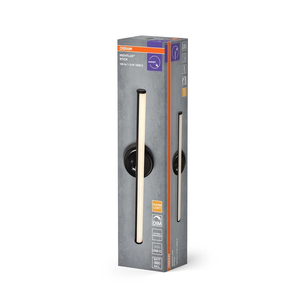 Lampka LED Nocna Magnetyczna 1.8W 100lm 3000K Ciepła 118° Akumulatorowe Czarna Ściemnialna Nightlux Osram