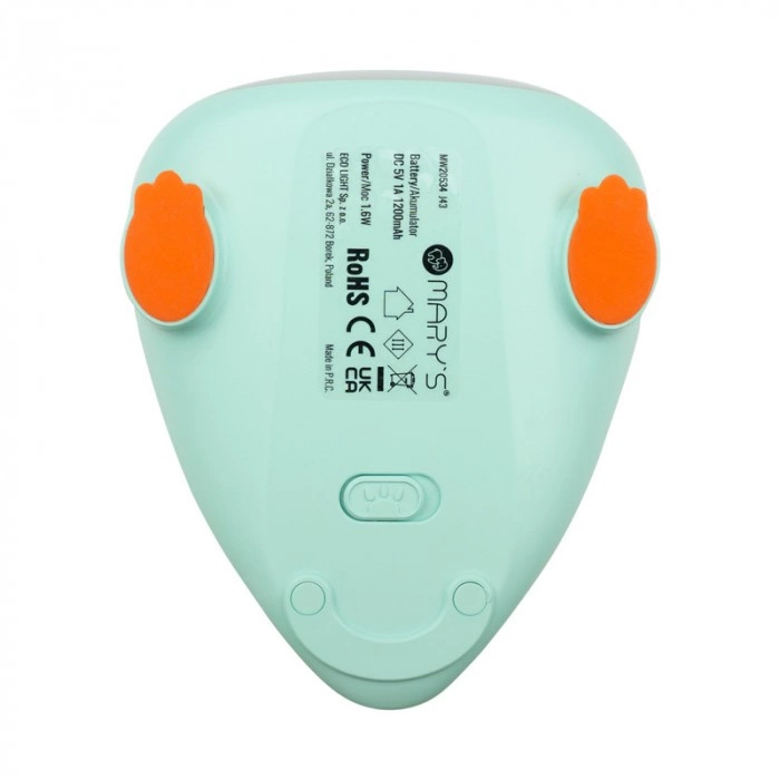 Lampka Nocna Dziecięca LED 1.6W 3000-6500K Ciepła i Zimna USB Akumulatorowa 1200mAh Zielona DINO MARY'S