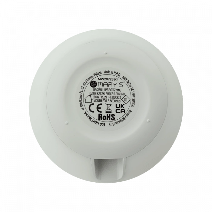 Lampka Nocna Dziecięca LED 1.6W 3000K Ciepła USB Akumulatorowa 900mAh Biała KACZUSZKA MARY'S