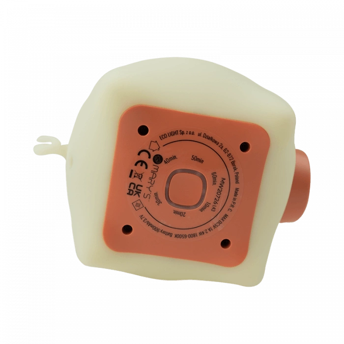 - Bezpieczeństwo i wytrzymałość – Dzięki wykonaniu z miękkiego silikonu oraz innych trwałych materiałów, lampka jest bezpieczna dla dzieci.