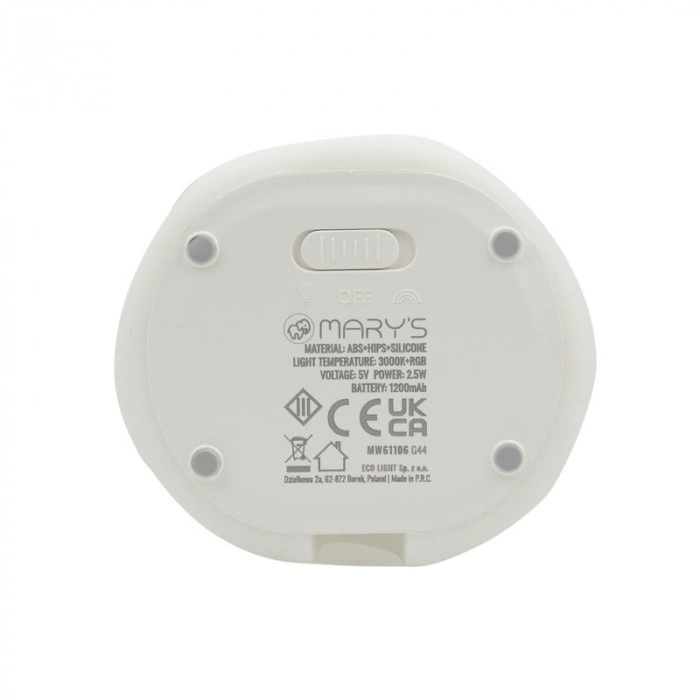 Lampka Nocna Dziecięca LED 2.5W 3000K Ciepła + Wielokolorowa RGB Akumulatorowa 1200mAh Biała ANIOŁEK MARY'S