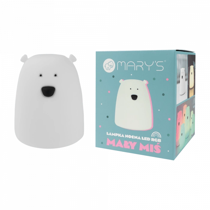 Lampka Nocna Dziecięca LED 3000K Ciepła + Wielokolorowa RGB Bateryjna Biała MAŁY MIŚ MARY'S