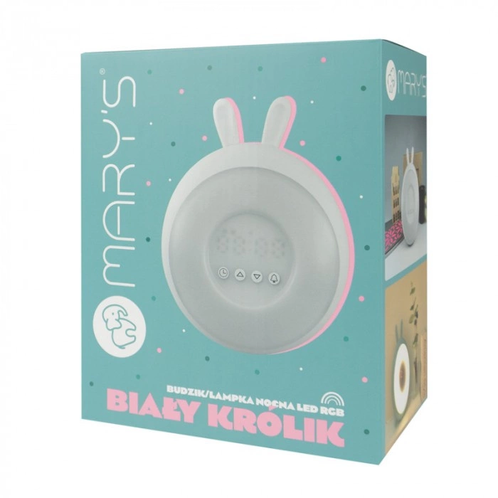Lampka Nocna Dziecięca LED Zegar Elektroniczny BUDZIK 3.1W 3000K Ciepła + Wielokolorowa RGB Biała KRÓLIK MARY'S