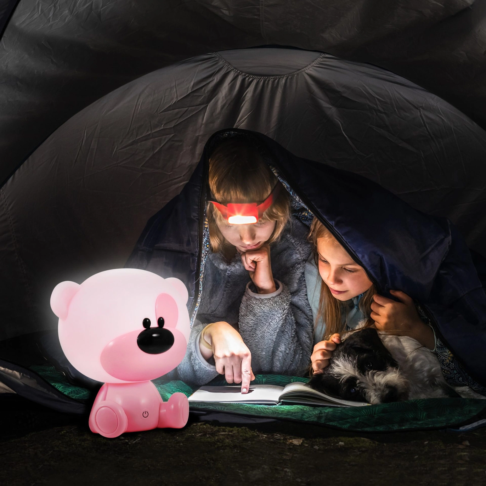 Przygotuj się na magiczny blask i ciepły akcent! Dekoracyjna lampka stołowa LED Miś Bibi w uroczej różowej odsłonie to idealne uzupełnienie każdej przestrzeni – od dziecięcego pokoju po elegancki salon. Z mocą znamionową 2.5W i strumieniem świetlnym 59 lumenów, ta lampka zapewnia doskonałe, subtelne oświetlenie, które tworzy atmosferę pełną komfortu i spokoju. Dzięki funkcji ściemniania 3-STEP, łatwo dostosujesz jasność światła do swoich potrzeb, oferując aż do 4 godzin działania na pełnej mocy lub 8 godzin przy 30% natężeniu.