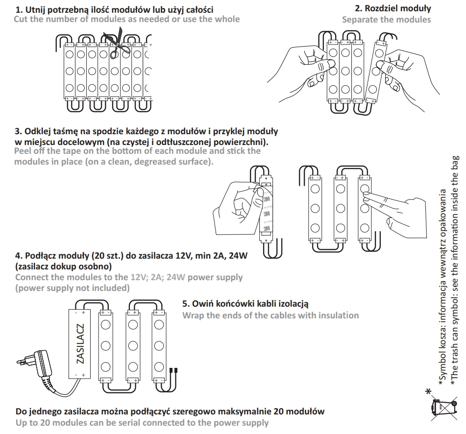 - Wszechstronne zastosowanie - Odpowiednie do użytku zewnętrznego i wewnętrznego, doskonale sprawdzają się w oświetleniu mebli, witryn sklepikowych, jako podświetlenie kasetonów i liter przestrzennych.