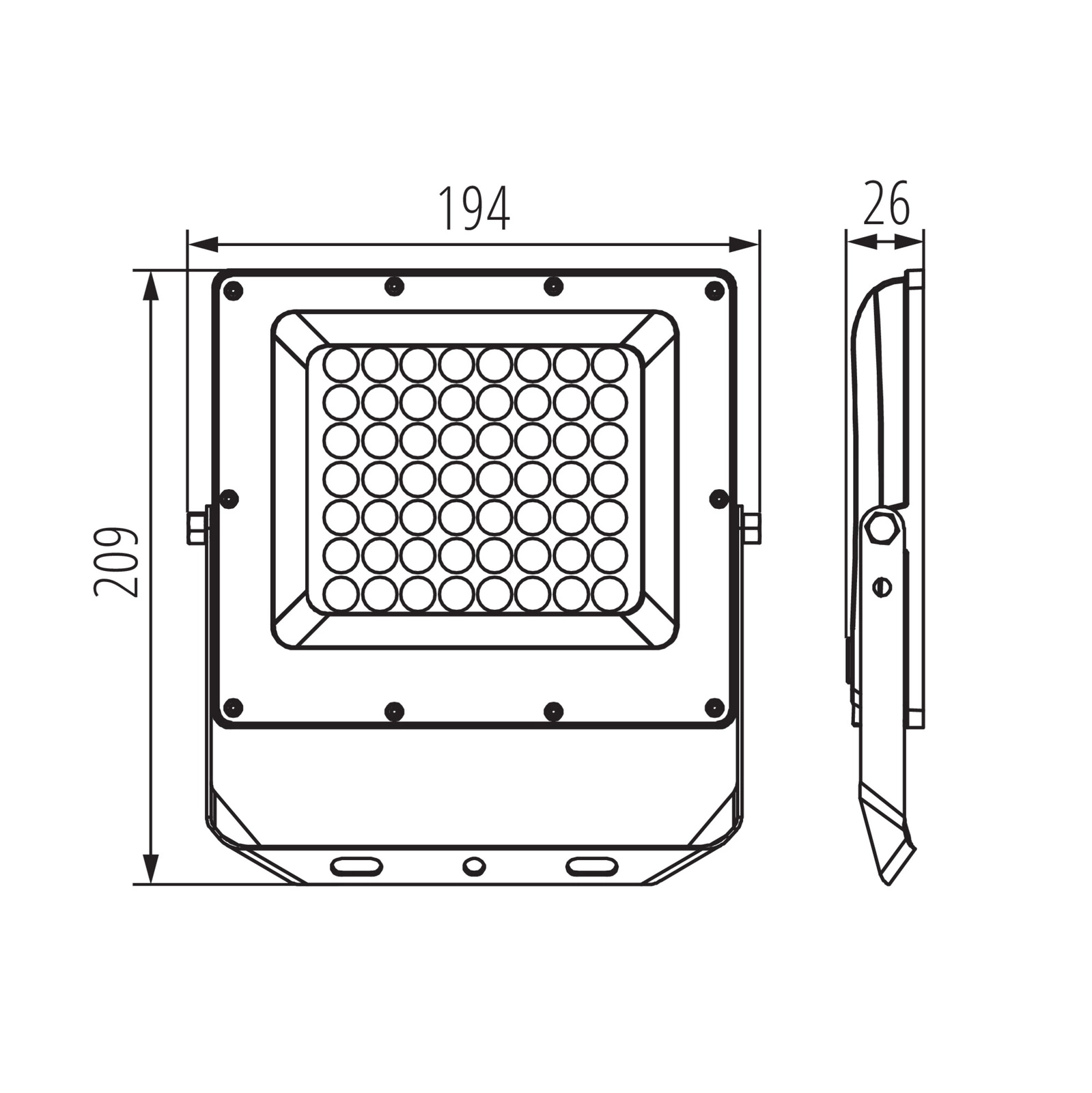 Solidna konstrukcja z aluminium oraz przesłona z poliwęglanu zapewniają trwałość i odporność na warunki atmosferyczne, co potwierdza wysoki stopień ochrony IP65. Naświetlacz jest przeznaczony do montażu natynkowego i posiada możliwość regulacji kąta padania światła, co ułatwia jego dostosowanie do konkretnych potrzeb.