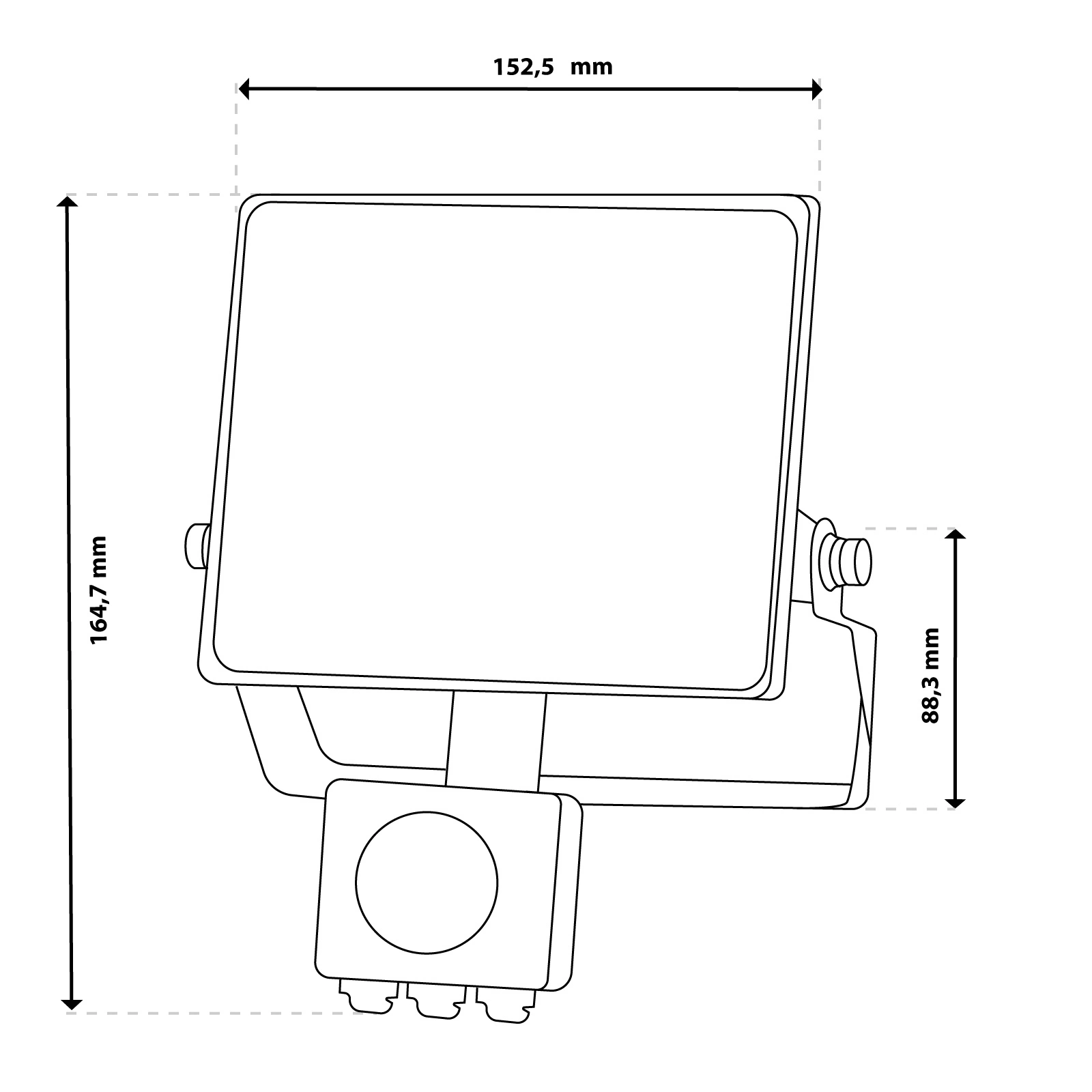Naświetlacz AZZLER został wyposażony w solidny uchwyt montażowy o prostym i funkcjonalnym kształcie. Regulacja kąta świecenia odbywa się za pomocą bocznych śrub, bez konieczności demontażu, co znacznie przyspiesza instalację. Trzy otwory w podstawie pozwalają na stabilne i bezpieczne mocowanie do różnych powierzchni – także w miejscach trudno dostępnych. To rozwiązanie, które oszczędza czas i zapewnia pewność montażu w każdych warunkach.