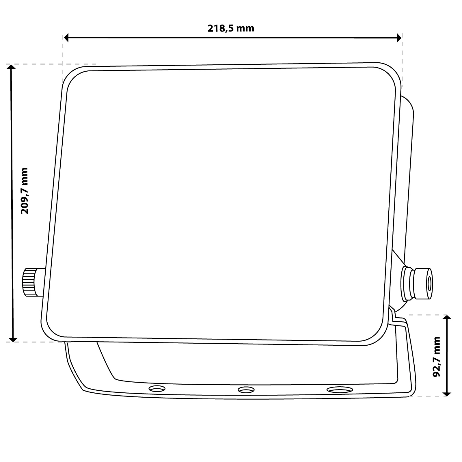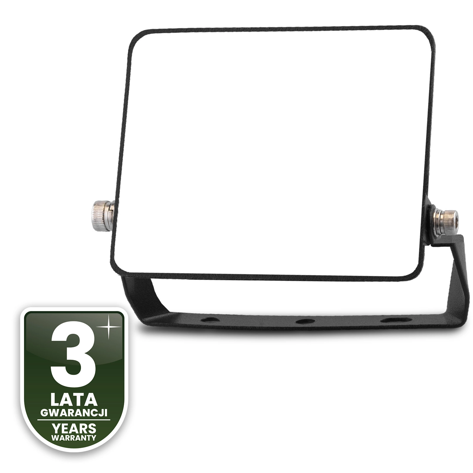 Naświetlacz AZZLER został wyposażony w solidny uchwyt montażowy o prostym i funkcjonalnym kształcie. Regulacja kąta świecenia odbywa się za pomocą bocznych śrub, bez konieczności demontażu, co znacznie przyspiesza instalację. Trzy otwory w podstawie pozwalają na stabilne i bezpieczne mocowanie do różnych powierzchni – także w miejscach trudno dostępnych. To rozwiązanie, które oszczędza czas i zapewnia pewność montażu w każdych warunkach.