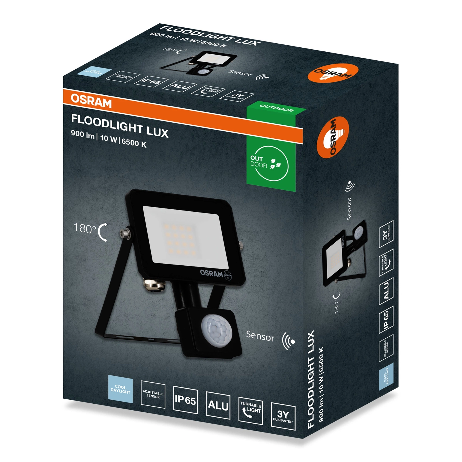 Naświetlacz LED Halogen Zewnętrzny Reflektor 10W 6500K 900lm IP65 z Czujnikiem Ruchu i Zmierzchu SENSOR FLOODLIGHT LUX OSRAM