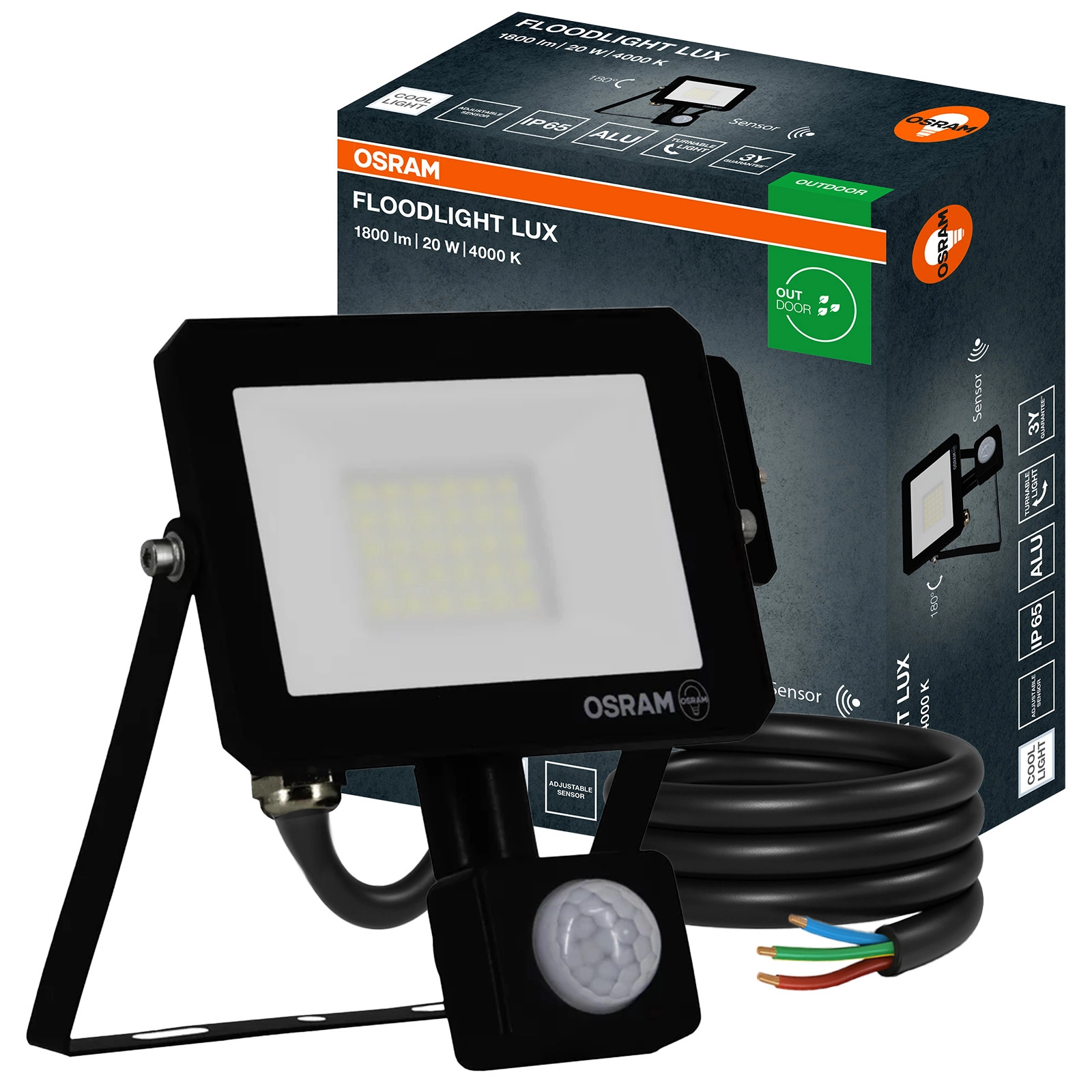 Naświetlacz LED Halogen Zewnętrzny Reflektor 20W 4000K 1800lm IP65 z Czujnikiem Ruchu i Światła FLOODLIGHT LUX SENSOR OSRAM