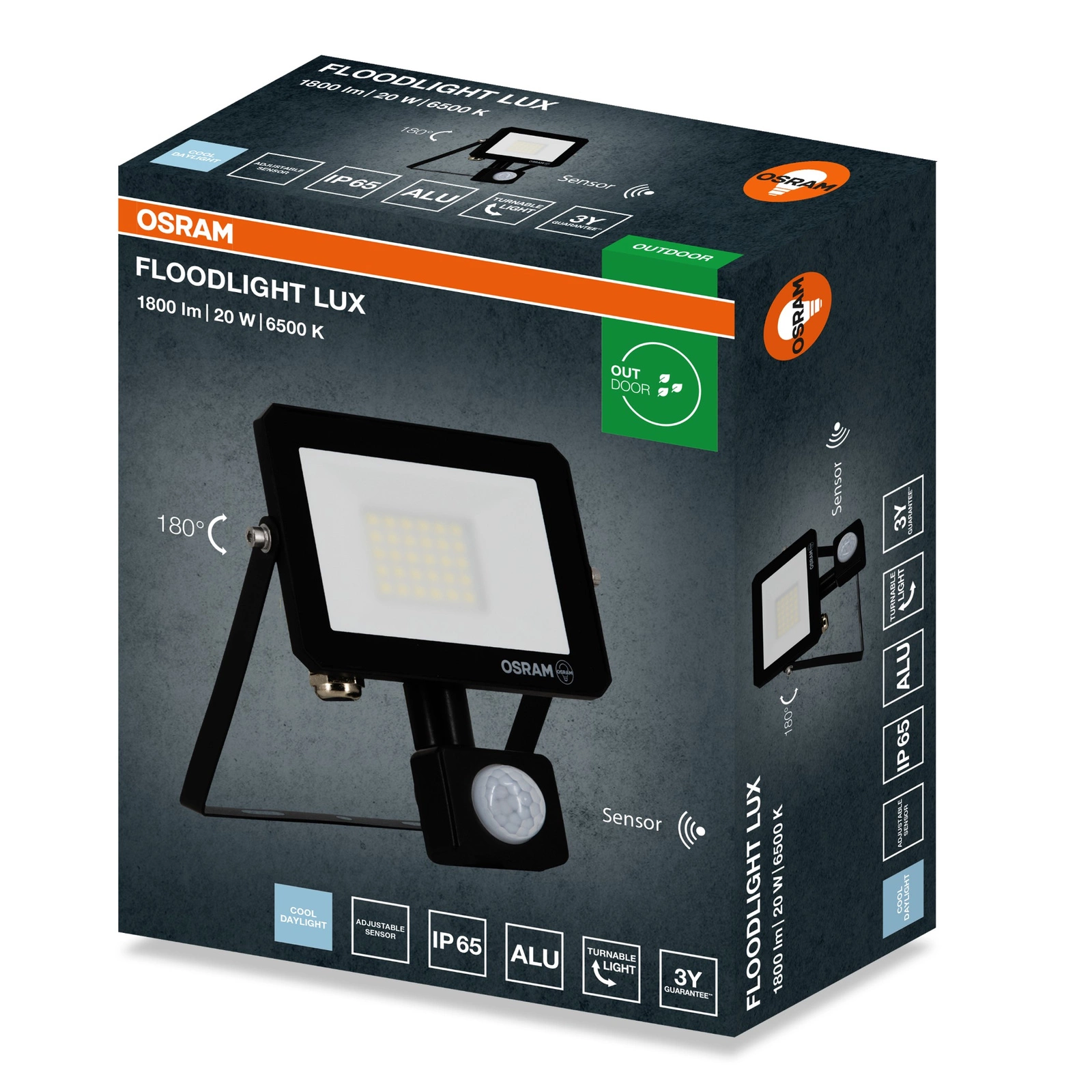 Naświetlacz LED Halogen Zewnętrzny Reflektor 20W 6500K 1800lm IP65 z Czujnikiem Ruchu i Zmierzchu SENSOR FLOODLIGHT LUX OSRAM