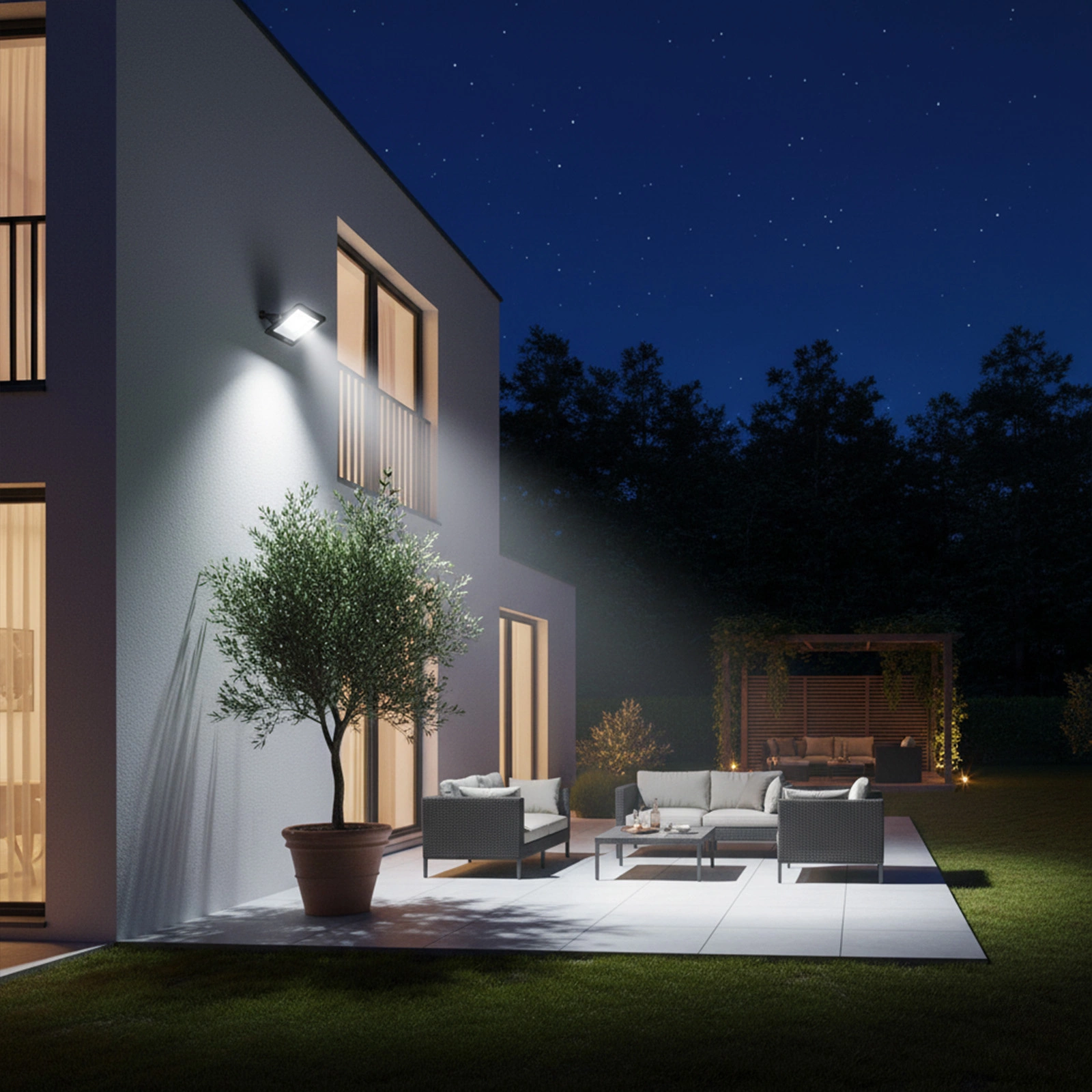 Naświetlacz LED uznanej na rynku oświetleniowym marki LEDVANCE z serii FLOODLIGHT LUX to nowoczesne oświetlenie przeznaczone do zastosowań zewnętrznych, które łączy wysoką funkcjonalność z trwałością i estetyką wykonania. Wyposażony w matowy klosz, zapewnia równomierne, bezolśnieniowe światło, a dzięki wygiętemu uchwytowi jego montaż jest szybki i prosty. Solidna konstrukcja oraz stopień ochrony IP65 sprawiają, że urządzenie doskonale sprawdza się w warunkach zewnętrznych – w ogrodach, na podjazdach, w warsztatach, garażach czy na zadaszonych placach magazynowych.