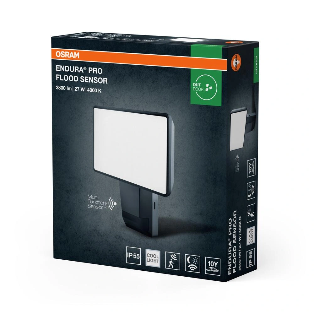 Naświetlacz LED Halogen Zewnętrzny Reflektor z Czujnikiem Ruchu i Zmierzchu 27W 4000K Neutralna 3000lm Szary IP55 Endura Osram