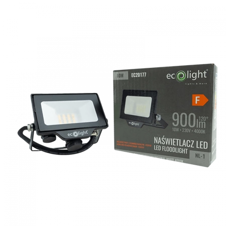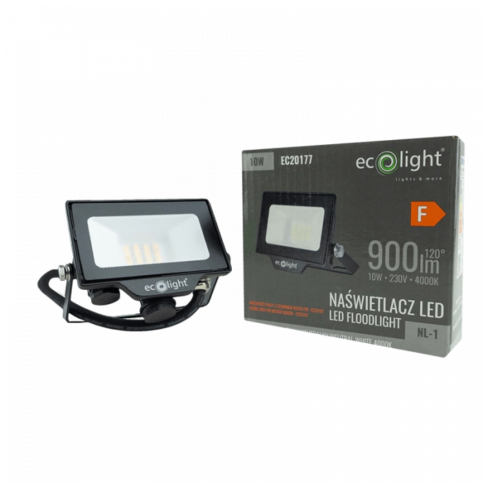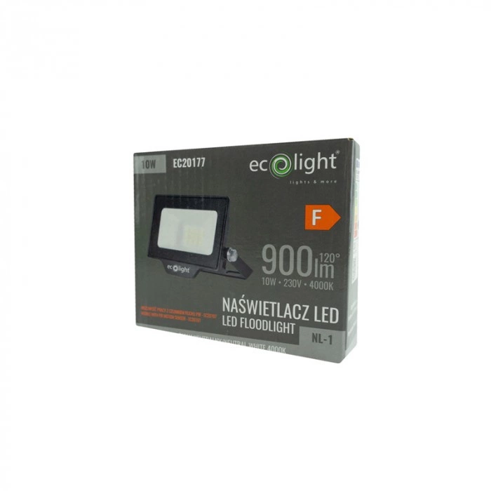Naświetlacz LED Lampa Reflektor 10W 900lm 4000K Neutralna IP65 NL-1 Ecolight to doskonałe rozwiązanie do efektywnego i trwałego oświetlania przestrzeni zewnętrznych. Ten nowoczesny reflektor o mocy 10W zapewnia jasność 900 lumenów, dzięki czemu idealnie sprawdza się zarówno w oświetlaniu dużych obszarów, jak i indywidualnych stref. Z temperaturą barwową 4000K tworzy przyjemne, neutralne światło białe, które jest odpowiednie do różnych zastosowań zewnętrznych.