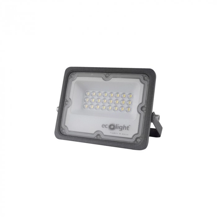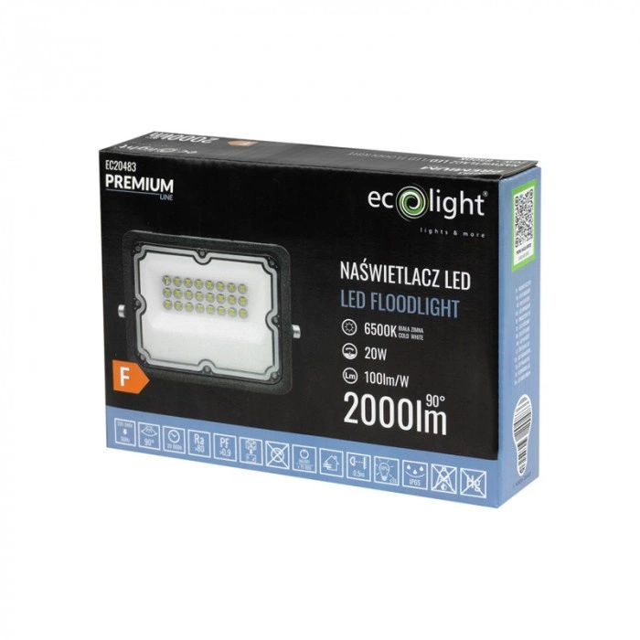 Naświetlacz LED Lampa Reflektor 20W marki Ecolight to doskonały wybór dla wszystkich, którzy szukają wydajnego i trwałego rozwiązania oświetleniowego do stosowania na zewnątrz. Z mocą znamionową 20W i strumieniem świetlnym aż 2000lm, gwarantuje wyjątkowo jasne i efektywne oświetlenie, które idealnie sprawdza się w różnych warunkach. Dzięki zastosowaniu diod SMD i temperaturze barwowej 6500K zapewnia zimne, białe światło o wysokiej jakości. Naświetlacz działa przy standardowym napięciu 220-240V i cechuje się skutecznością świetlną na poziomie 100lm/W, co czyni go produktem energooszczędnym.