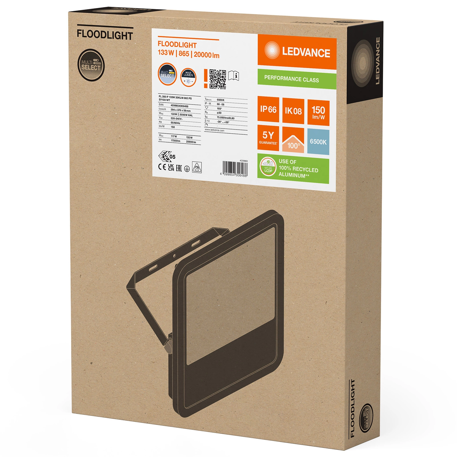 Odkryj wyjątkową jasność na zewnątrz dzięki Naświetlaczowi LED Reflektorowi Zewnętrznemu Ledvance o imponującej mocy 133W. Ten nowoczesny reflektor o strumieniu świetlnym 20000 lumenów zamieni Twoją przestrzeń w doskonale oświetloną oazę, niezależnie od warunków pogodowych. Z chłodnym, białym światłem o temperaturze 6500K świetnie sprawdzi się do oświetlenia placów, parkingów oraz elewacji budynków. Odporność na wodę i pył potwierdzona wysokim stopniem ochrony IP66, czyni go ochranianym przyjacielem na każdą pogodę.