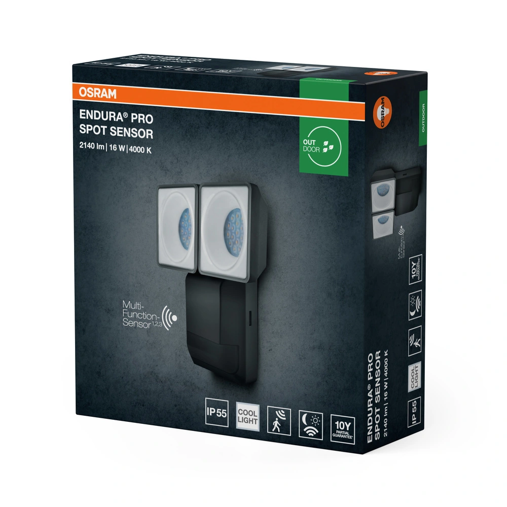 Naświetlacz LED Reflektor Zewnętrzny Lampa LED z Czujnikiem Ruchu i Zmierzchu 16W 1500lm 4000K Neutralna Szary IP55 Endura Osram