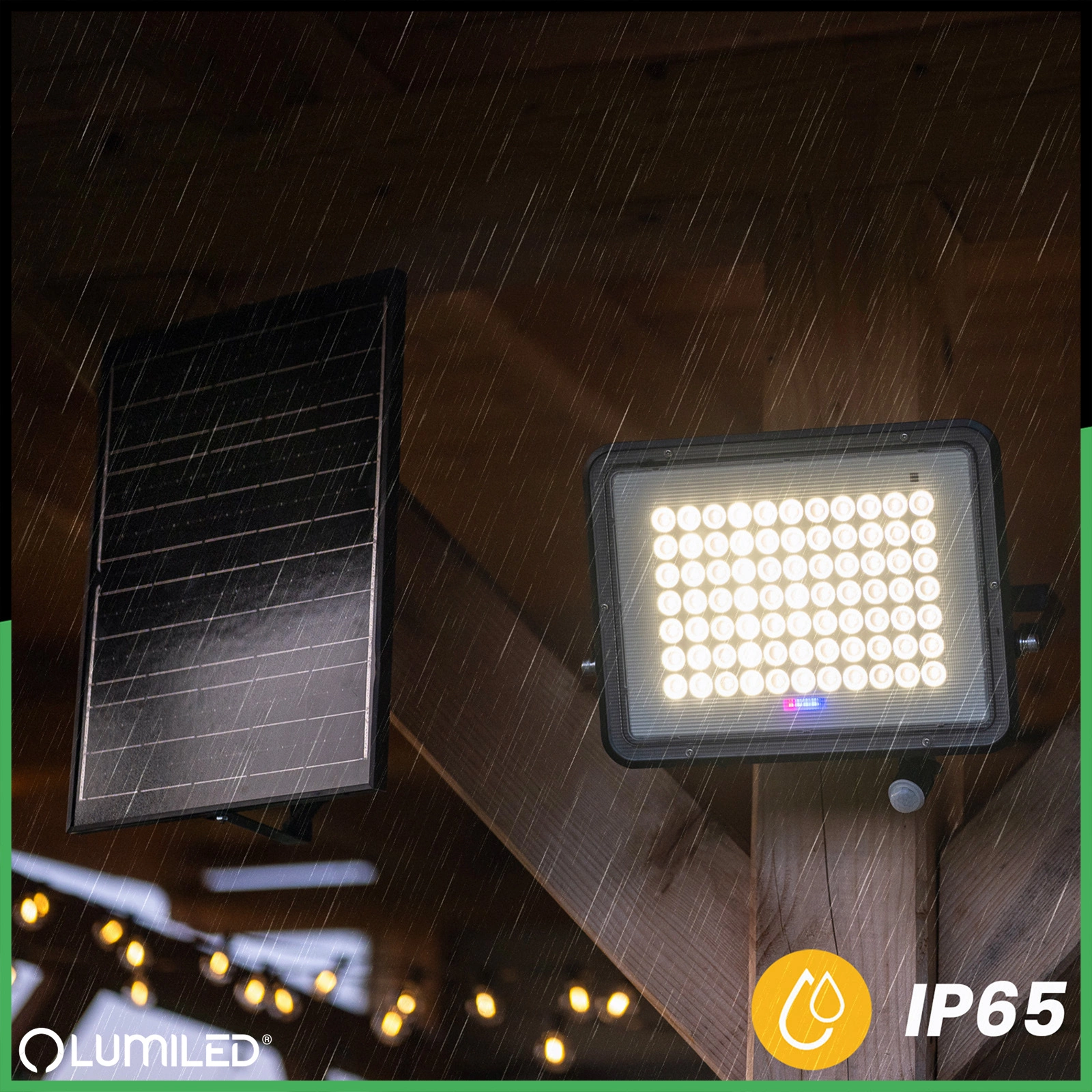 Nie musisz się martwić deszczem, śniegiem czy kurzem. Wysoka klasa szczelności IP65 oznacza, że naświetlacz jest odporny na trudne warunki atmosferyczne. Solidna obudowa chroni przed pyłem i wodą, dzięki czemu masz pewność, że będzie działać niezawodnie przez wiele sezonów. Dodatkowo między panelem a naświetlaczem znajduje się hermetyczne złącze, dzięki któremu lampa jest w pełni zabezpieczona przed wilgocią i uszkodzeniem.