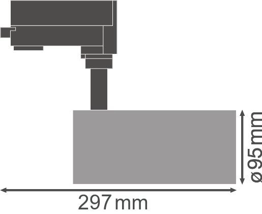 Ten model wykonany jest z trwałego aluminium w klasycznym czarnym kolorze, a jego montaż odbywa się na szynie trójfazowej. Reflektor zasilany jest napięciem 220-240V i osiąga klasę ochronności IP20, co zapewnia solidną ochronę przed ciałami stałymi. Długowieczność produktu wynosi aż 50000 godzin, a współczynnik mocy λ 0.9 zapewnia energooszczędność i wydajność.