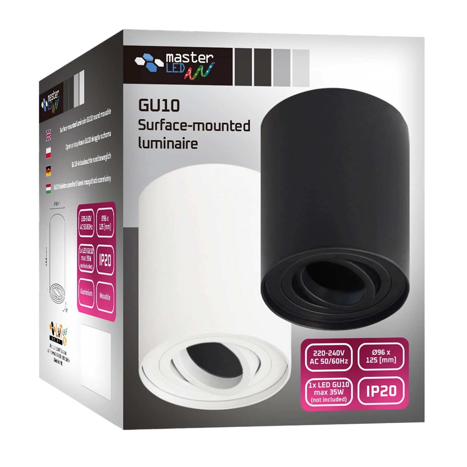 • Zastosowanie modułowe i wymienne - dzięki wykorzystaniu trzonka GU10 pozwala na łatwą zmianę żarówek i dostosowanie intensywności światła do potrzeb użytkownika.