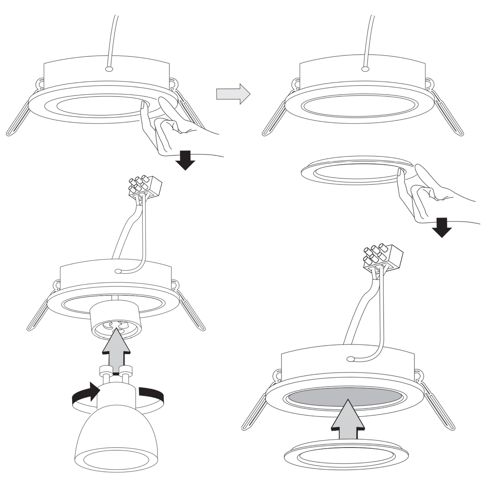 - Wymienne źródło światła: Kompatybilność z trzonkiem GU10 umożliwia łatwą wymianę i dostosowanie do preferowanych żarówek.
