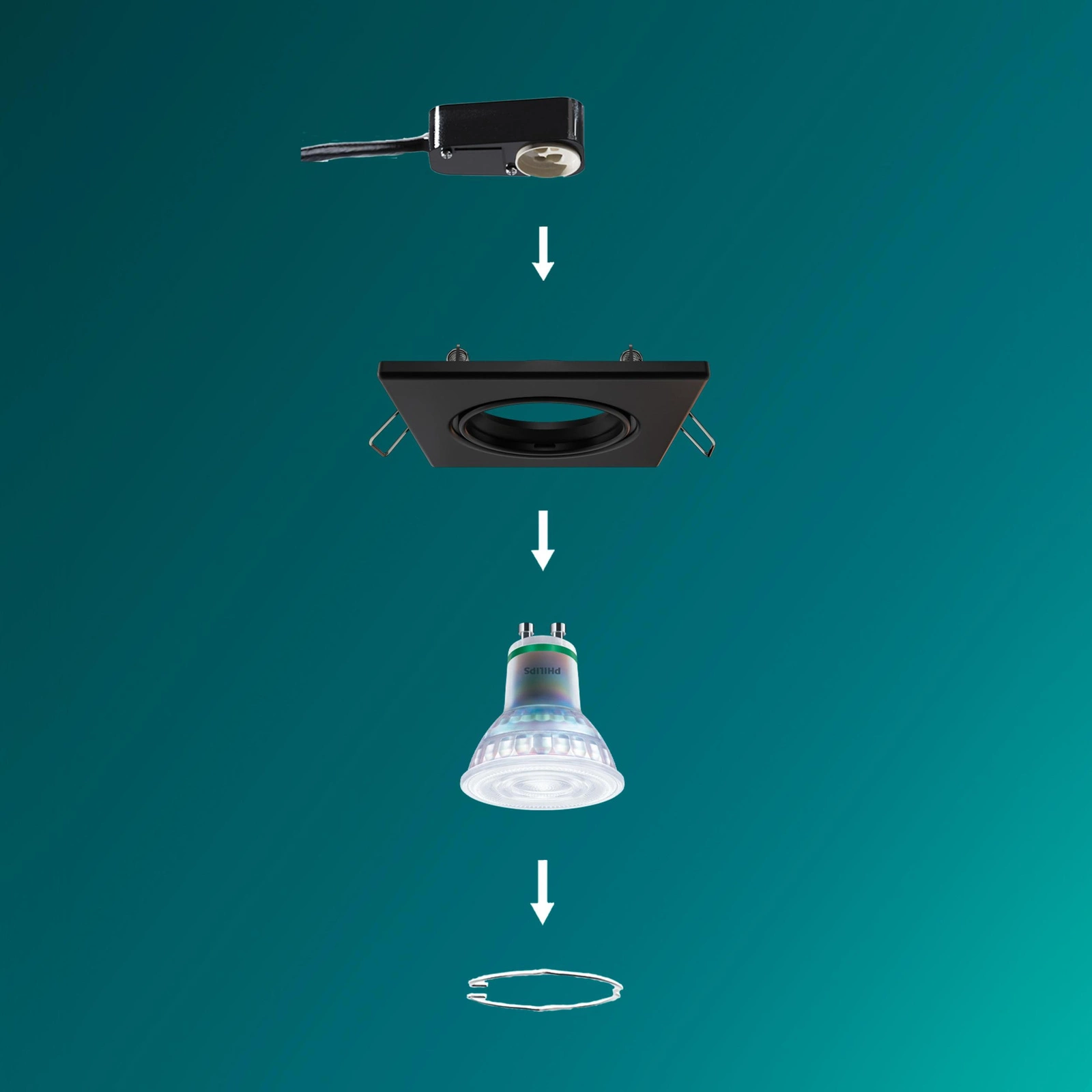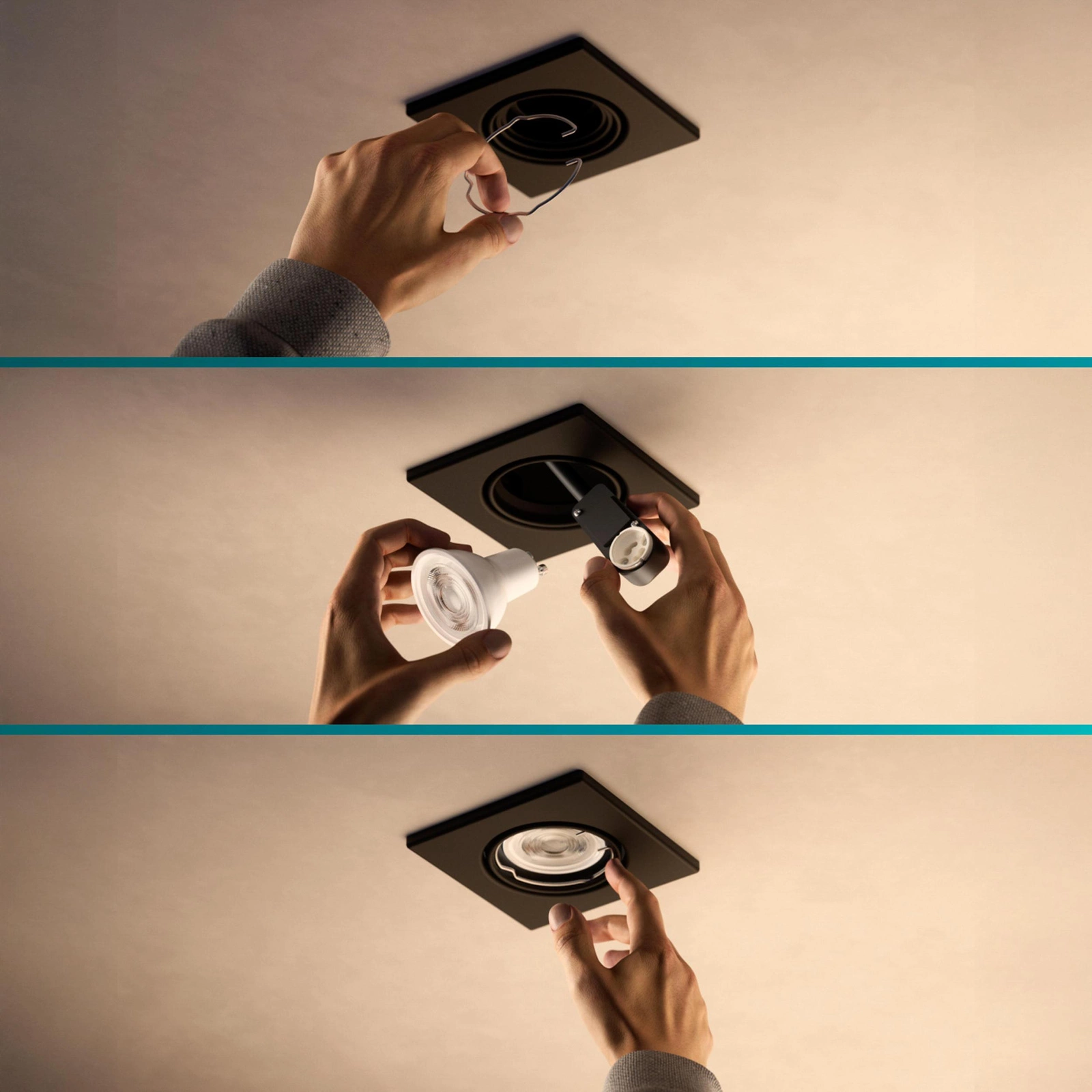 Wybierz nowoczesne i stylowe oświetlenie, które wprowadzi elegancję do Twojego wnętrza! Przedstawiamy Oprawę Podtynkową Wpuszczaną LED typu GU10 marki Philips z serii Peridot. Wyróżnia się nie tylko estetycznym, czarnym, matowym wykończeniem, ale także funkcjonalnością. Dzięki regulacji kąta padania światła dostosujesz oświetlenie do swoich potrzeb, co sprawia, że doskonale sprawdzi się zarówno w salonie, kuchni, sypialni, jak i jadalni.