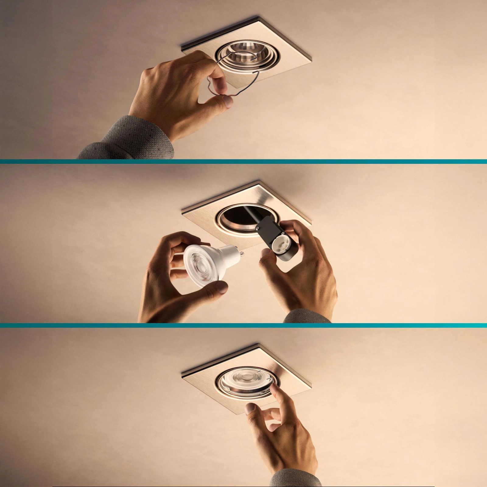 Oprawa Philips Peridot sprzedawana jest bez żarówki, dzięki czemu możesz samodzielnie dobrać źródło światła dopasowane do swoich potrzeb. Aby uzyskać maksymalny komfort użytkowania, zalecamy stosowanie żarówek Philips z oznaczeniem EyeComfort, które emitują światło przyjazne dla oczu – bez migotania i efektu olśnienia. Takie rozwiązanie pozwala stworzyć przyjemną atmosferę w każdym pomieszczeniu, dbając o zdrowie wzroku Twojego i Twoich bliskich.