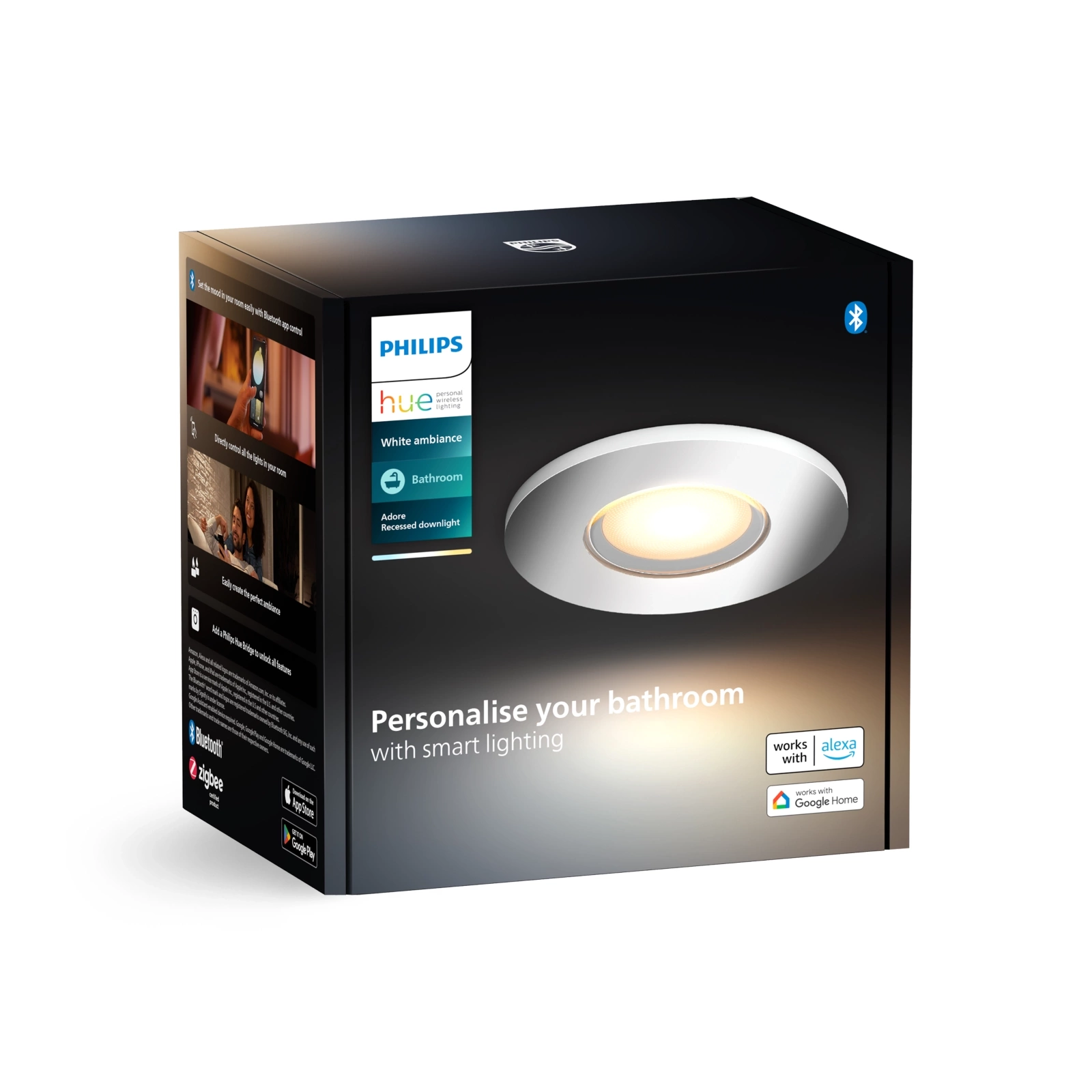 Odkryj nową jakość oświetlenia z inteligentną oprawą podtynkową LED Philips Hue Adore, idealną do łazienki i każdego nowoczesnego wnętrza. Wyposażona w moc 4.2 W generuje imponujący strumień świetlny na poziomie 400 lm, a jej skuteczność świetlna to aż 95.3 lm/W. Ten produkt zapewnia nie tylko doskonałe oświetlenie, ale także różnorodność dzięki zmiennej barwie światła w zakresie 2200-6500 K. Dopasuj atmosferę do swoich potrzeb, niezależnie od tego, czy szukasz relaksującego światła do kąpieli, czy intensywnego oświetlenia podczas porannej toalety.
