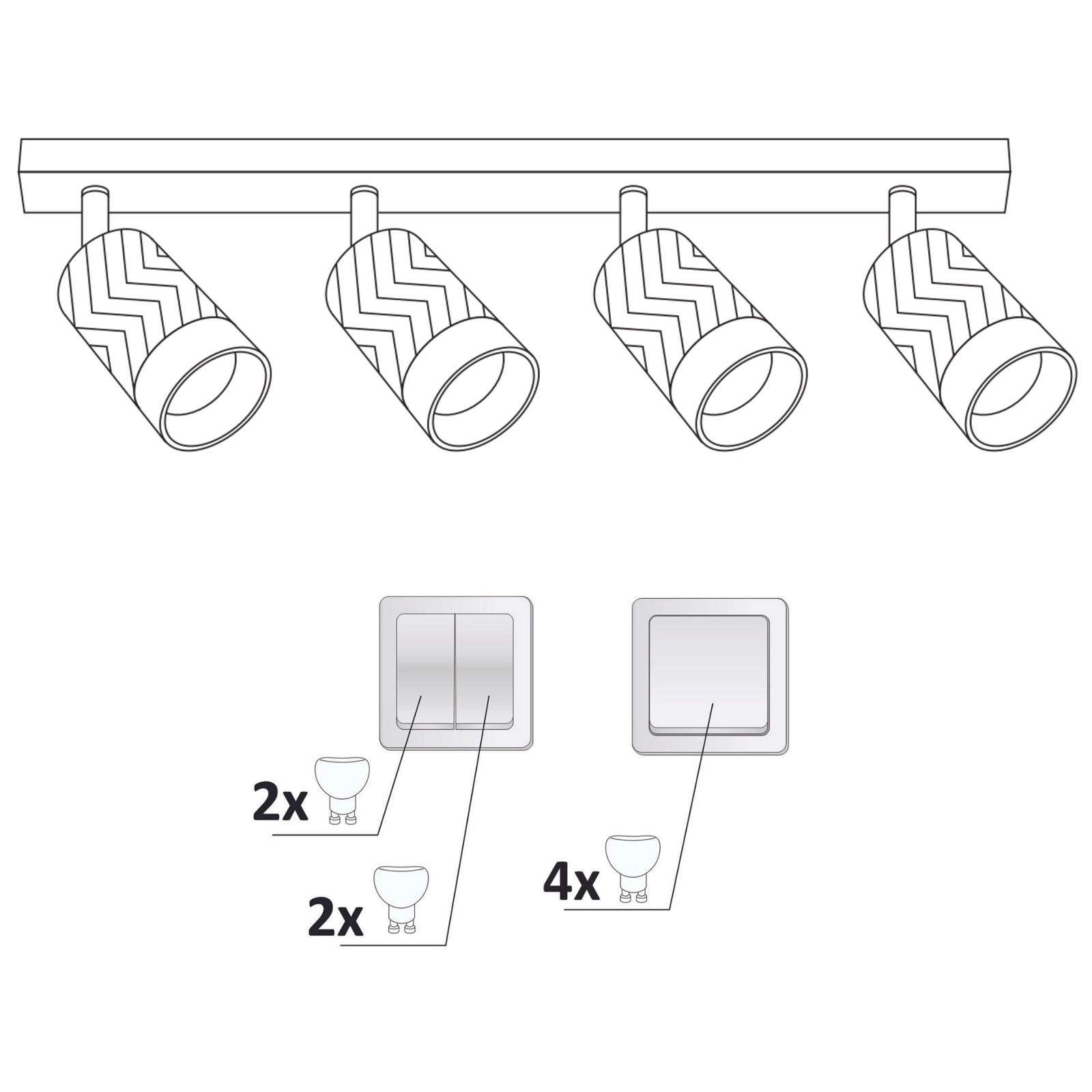 - Elastyczność oświetleniowa: Cztery wymienne źródła światła z trzonkiem GU10, pozwalające na dostosowanie mocy i barwy światła do własnych potrzeb.