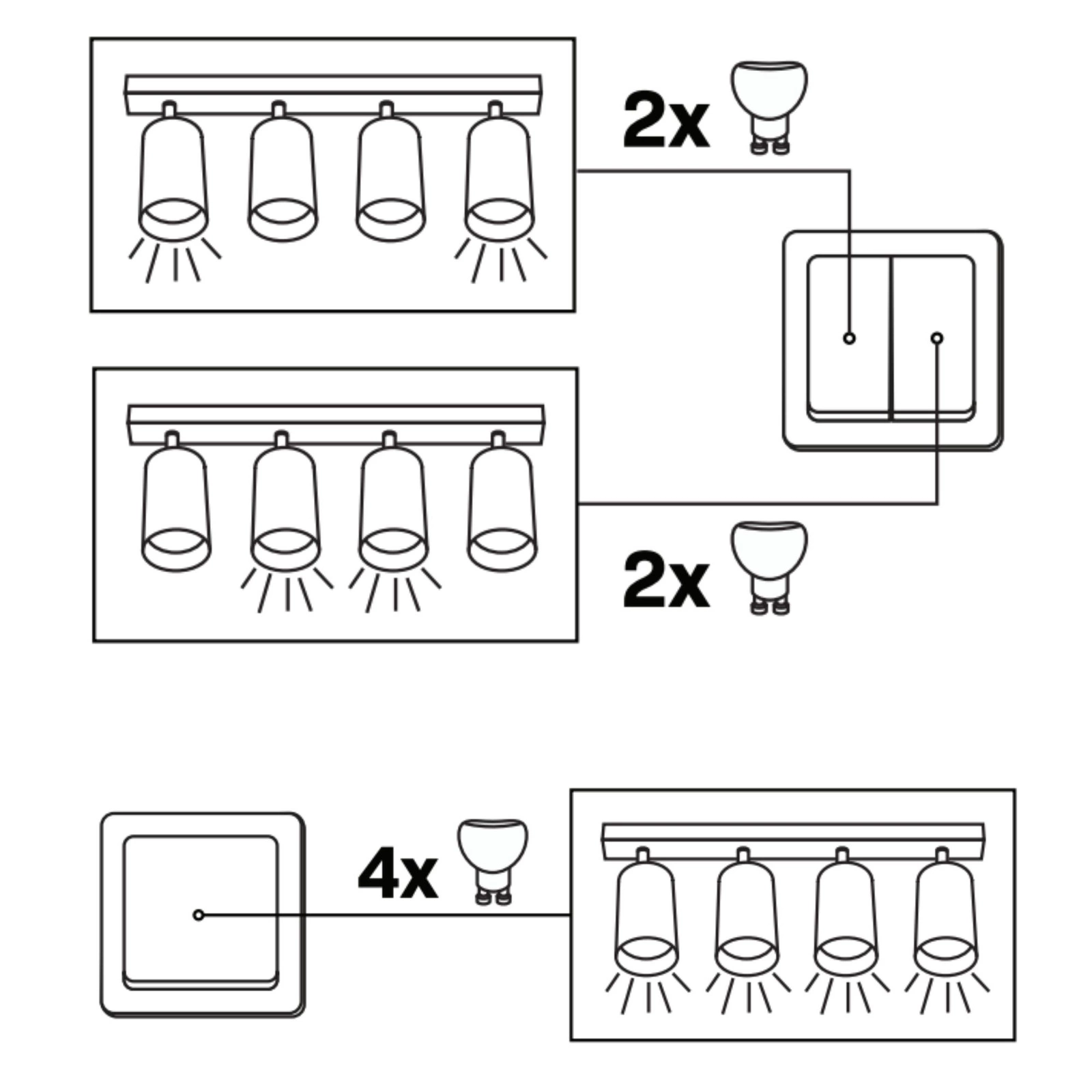 - Wysoka funkcjonalność: Cztery punkty świetlne, co pozwala na optymalne oświetlenie pomieszczenia, z wymiennym trzonkiem GU10.