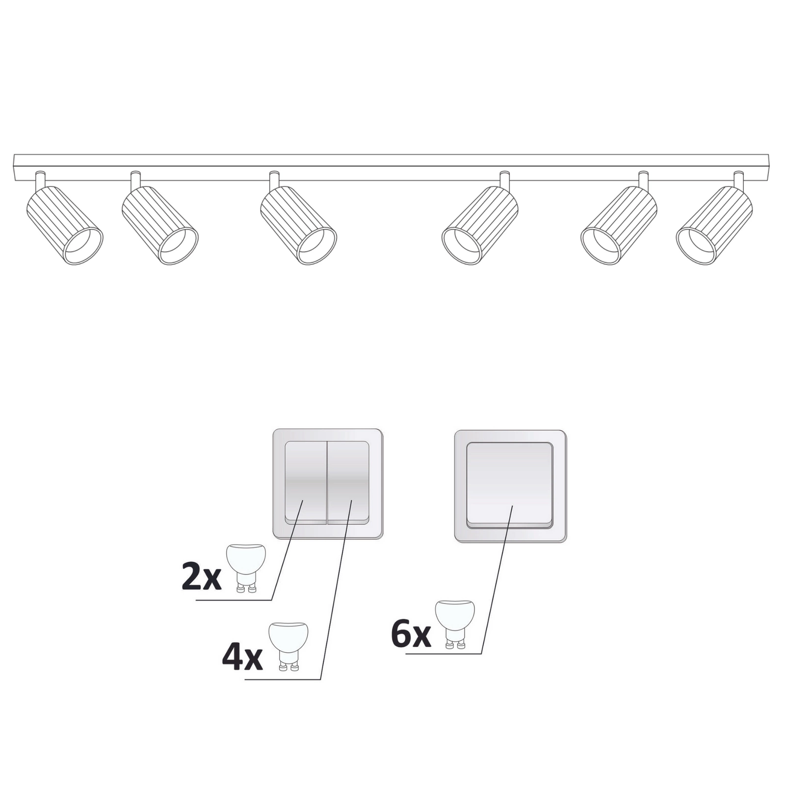 • Wielofunkcyjność: Dzięki sześciu punktom świetlnym można równomiernie oświetlić pomieszczenie, zapewniając odpowiednią ilość światła w różnych strefach.