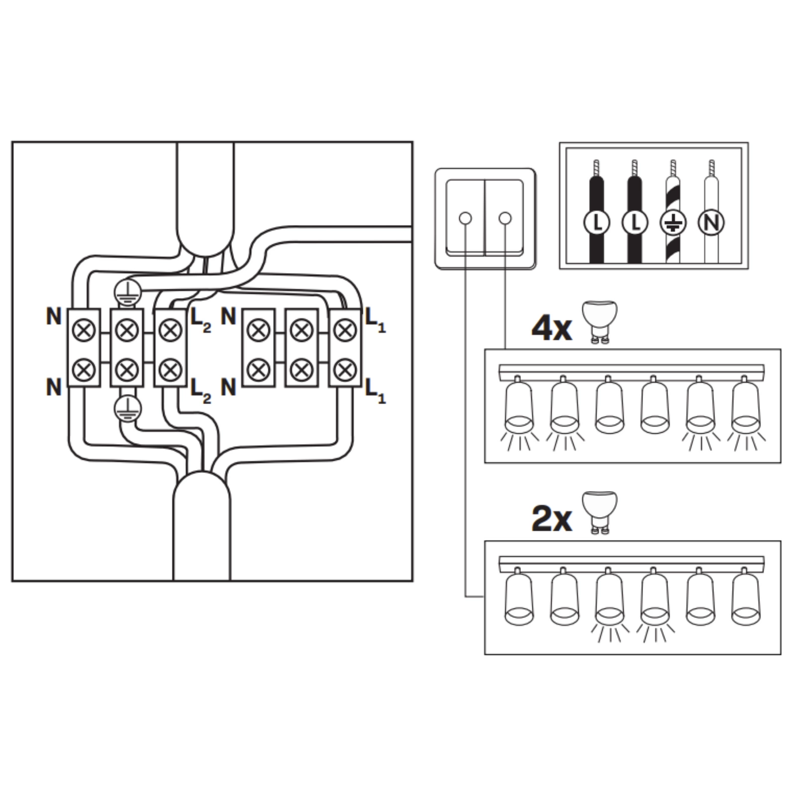 - Sześć punktów świetlnych: Możliwość zamontowania sześciu źródeł światła GU10 zapewnia doskonałe oświetlenie każdego pomieszczenia.