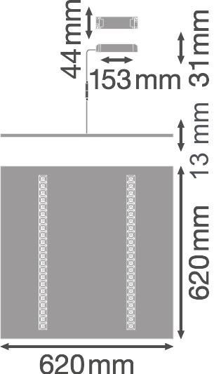 Panel wykonany jest z wytrzymałej stali, posiada stopień ochrony IP40 i IK08, co czyni go odpornym na uszkodzenia mechaniczne. Zintegrowane źródło LED zapewnia trwałość do 80000 godzin i wysoką skuteczność świetlną 120 lm/W. Lampa jest łatwa w montażu, dzięki konstrukcji podtynkowej o wymiarach 62x62 cm. Przystosowana do pracy w temperaturach od +5 do +40°C jest kompatybilna z sieciowym zasilaniem AC 220-240V.
