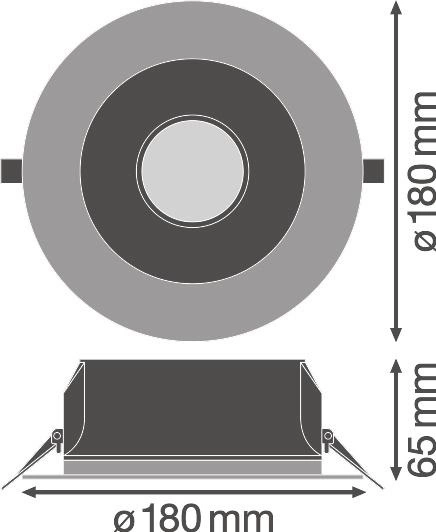 Posiada klasę ochronności II oraz stopień ochrony IP54|IP20, co gwarantuje bezpieczeństwo użytkowania. Dzięki kątom rozsyłu światła 65° oraz wskaźnikowi oddawania barw 80 Ra, światło jest dobrze rozproszone i naturalne. Montaż wpuszczany zapewnia minimalizm i estetykę, a wymiary Ø18 cm oraz głębokość montażu 100 mm sprawiają, że oprawa idealnie pasuje do różnorodnych przestrzeni. Nie jest ściemnialna, co predysponuje ją do miejsc wymagających stabilnego oświetlenia.