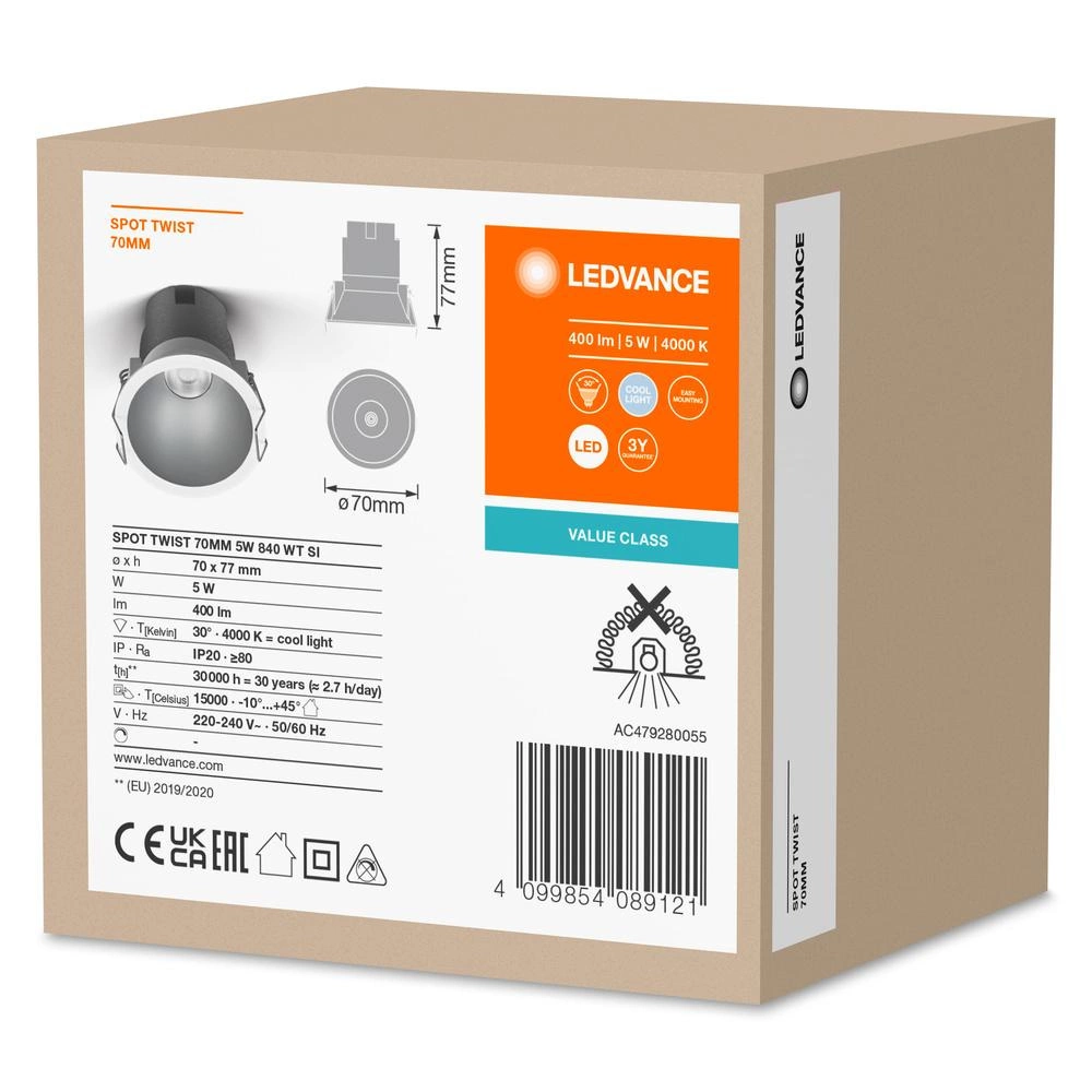 Panel LED Oprawa Podtynkowa Punktowa 5W 400lm 4000K Neutralna Oczko Spot Biały Srebrny Downlight Slim Ledvance