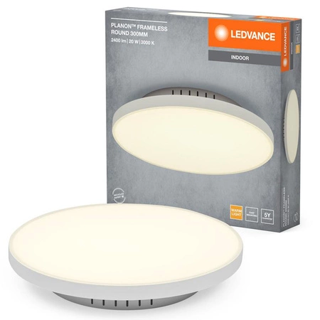 Oświetl swoje wnętrze nowoczesnym stylem dzięki plafonowi sufitowemu LED Planon™ Ledvance o mocy 19W. Lampa ta oferuje jasność 1750 lm, zapewniając doskonałe oświetlenie przestrzeni. Ciepła barwa światła o temperaturze 3000K wprowadzi przytulną atmosferę do każdego pomieszczenia. Zintegrowane źródło światła LED oznacza mniejsze zużycie energii przy zachowanej skuteczności świetlnej 88 lm/W.