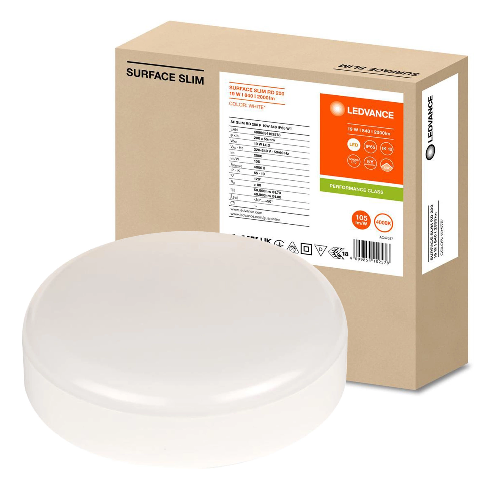 - Stabilizowana na promieniowanie UV obudowa z poliwęglanu (PC), dyfuzor PC.