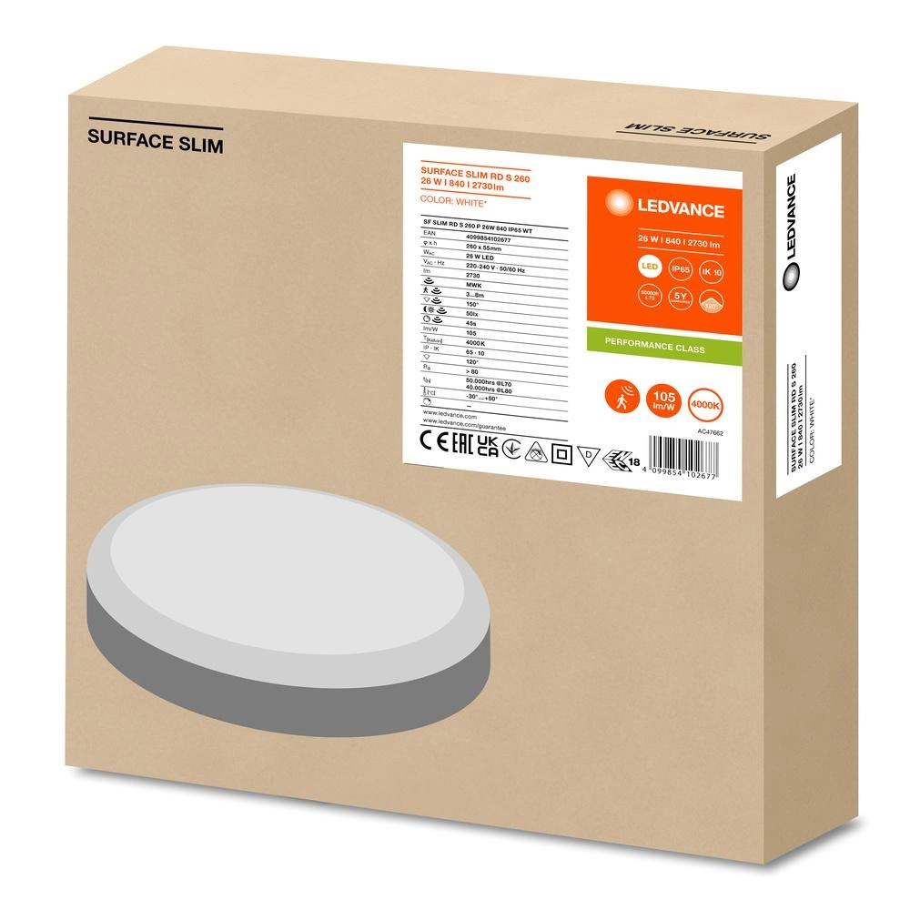 Plafon LED Lampa Sufitowa 26W 2730lm 4000K Neutralna z Czujnikiem Ruchu Zmierzchu Natynkowa Biały 26cm Surface Ledvance