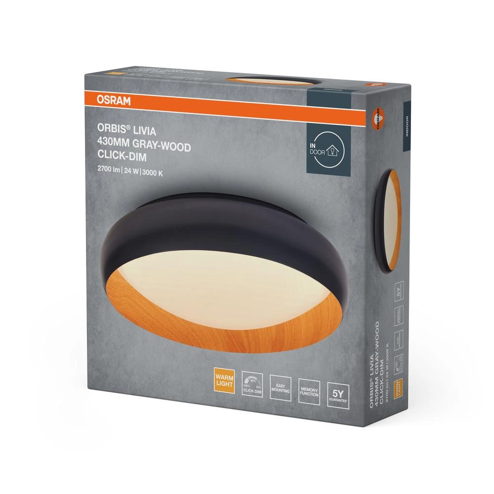 Oferowana lampa sufitowa LED natynkowa Orbis Livia od renomowanego producenta LEDVANCE GmbH to połączenie nowoczesnego designu i wyjątkowej funkcjonalności. Okrągły kształt i elegancki wygląd w odcieniach szarości i brązu doskonale wpasują się w każde wnętrze, od sypialni po kuchnię. Moc znamionowa 24W oraz strumień świetlny 1200 lm gwarantują nie tylko energooszczędność, ale także przytulne, ciepłe białe światło o temperaturze barwowej 3000K. Dzięki kątowi rozsyłu światła 120°, lampa równomiernie oświetla pomieszczenie, zapewniając komfort użytkowania.