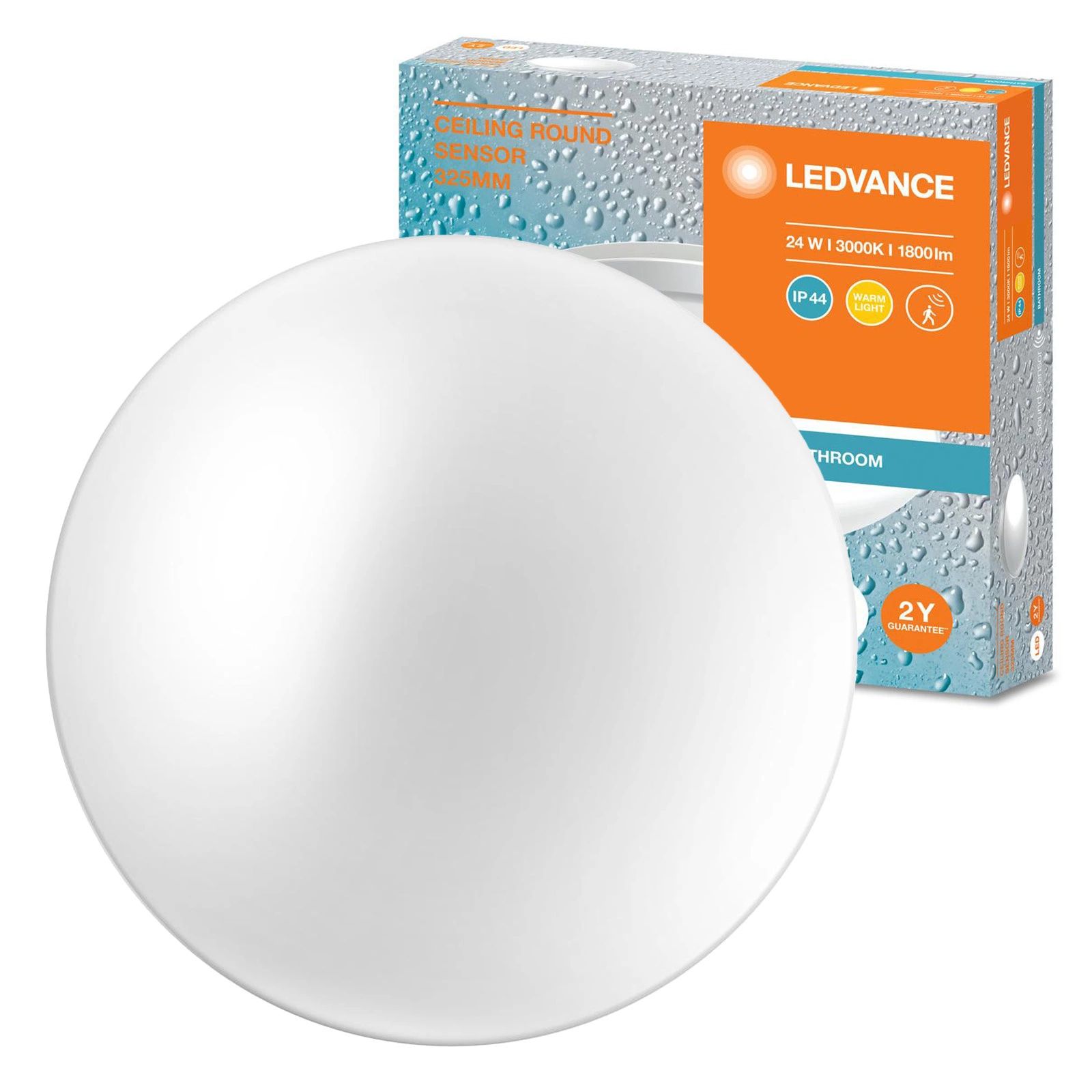 Plafon LED Lampa Sufitowa Natynkowa 24W 1800lm 3000K Ciepła IP44 Biały z Czujnikiem Dźwięku Ceiling Ledvance