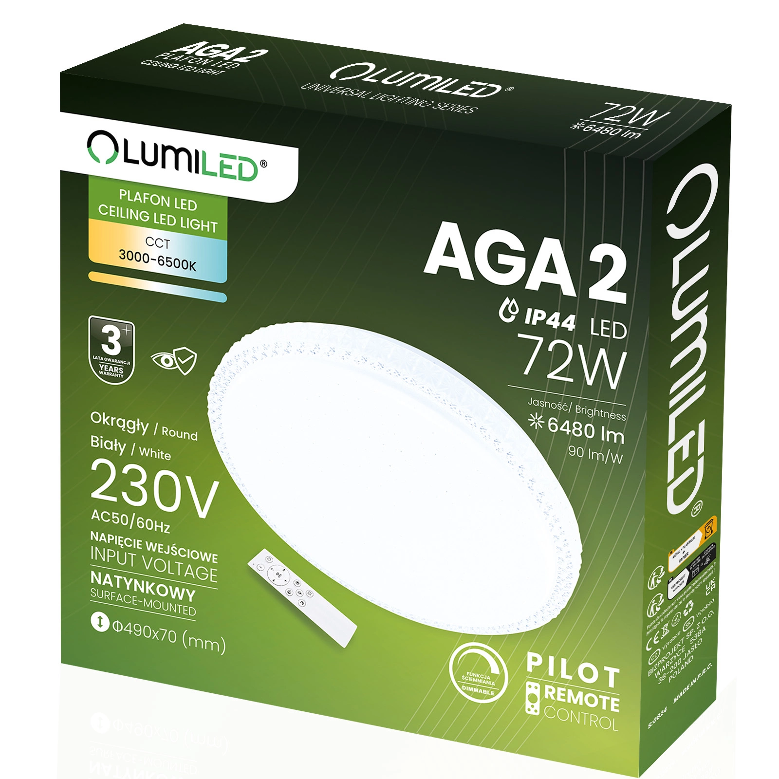 Plafon LED Lampa Sufitowa Natynkowa AGA2 72W IP44 CCT Biały Okrągły 50cm + PILOT LUMILED