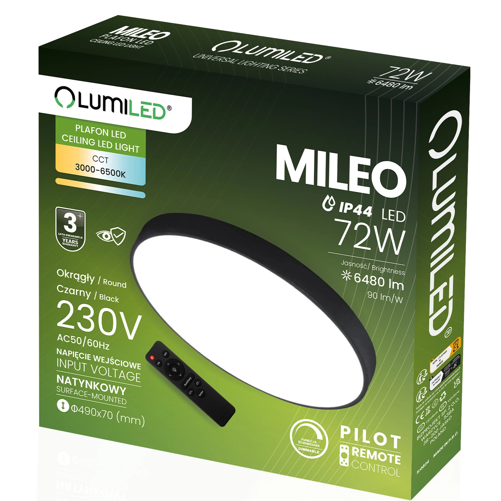 Plafon MILEO został stworzony z myślą o długiej i bezproblemowej eksploatacji. Wytrzymała konstrukcja i technologia LED gwarantują stabilne światło oraz niskie zużycie energii przez wiele lat. Klasa szczelności IP44 chroni przed wilgocią i pyłem, dzięki czemu lampa sprawdza się nie tylko w salonie czy sypialni, ale także w łazience i korytarzu, zapewniając bezpieczeństwo i komfort codziennego użytkowania.