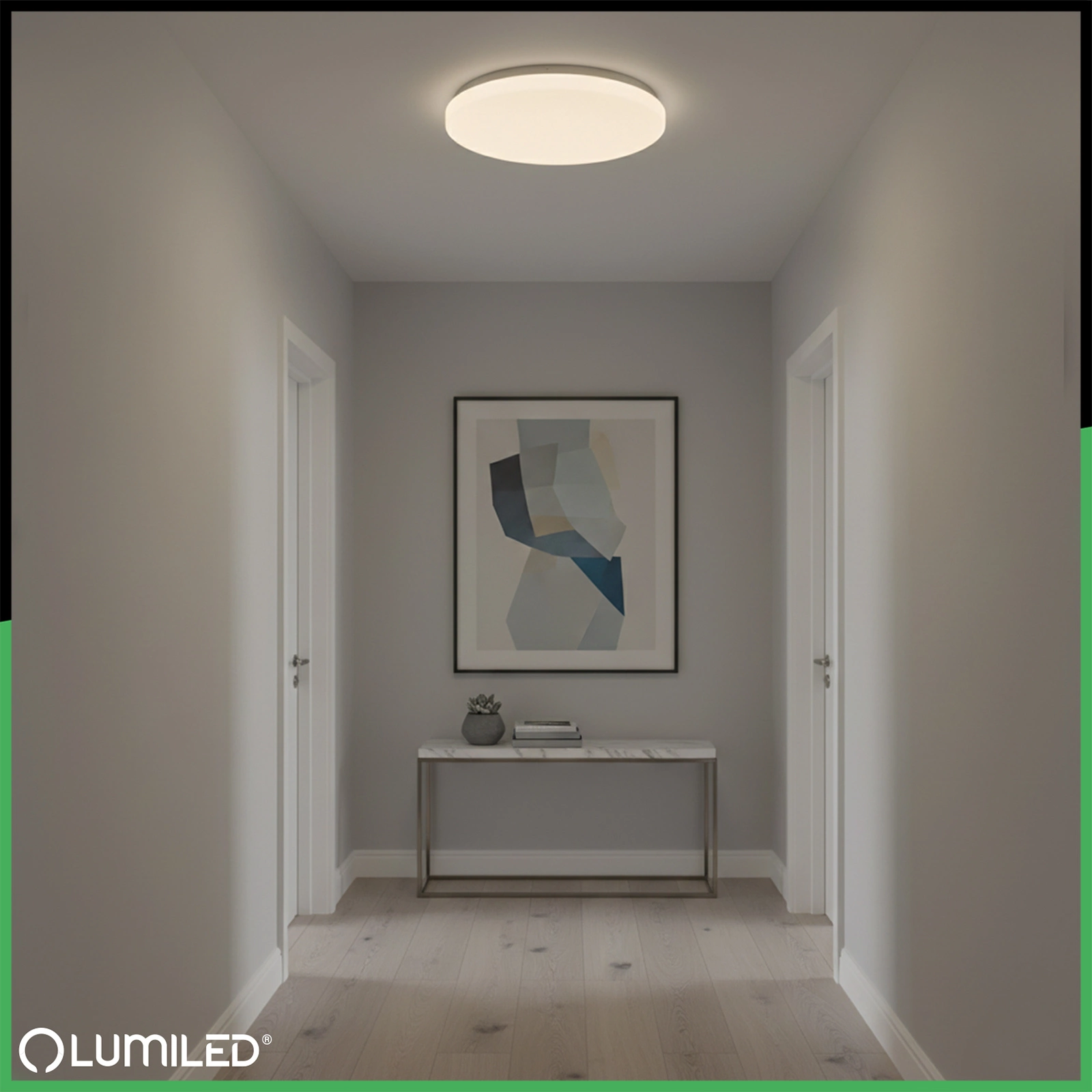 LUMILED SALUS 2 to elegancki plafon LED, który łączy nowoczesny wygląd z wysoką funkcjonalnością. Zapewnia jasne i przyjemne światło, które możesz dopasować do swoich potrzeb – od relaksu po pracę. Dzięki wbudowanemu ściemnianiu i pilotowi z regulacją barwy światła zyskujesz pełną swobodę w tworzeniu odpowiedniej atmosfery – od ciepłego, relaksującego blasku po chłodne, pobudzające światło sprzyjające koncentracji. Minimalistyczna forma w białym kolorze pasuje do każdego wnętrza, podkreślając jego elegancję i lekkość aranżacji.