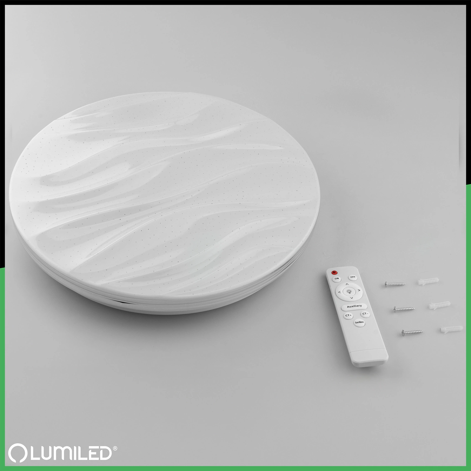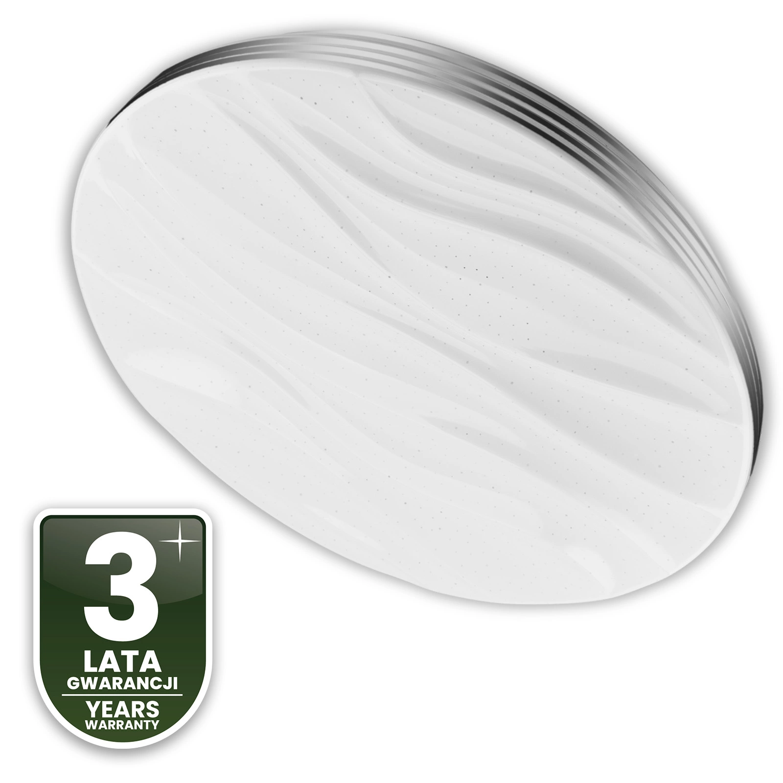 Pilot zdalnego sterowania pozwala w kilka sekund zmienić charakter pomieszczenia – od ciepłej i przytulnej atmosfery po chłodne, energetyzujące światło. Dzięki funkcji płynnego ściemniania dostosujesz jasność do pory dnia i aktywności, zyskując pełen komfort użytkowania, a klosz o mlecznym wykończeniu i subtelnym falistym wzorze zapewnia równomierne, przyjemne dla oczu oświetlenie.